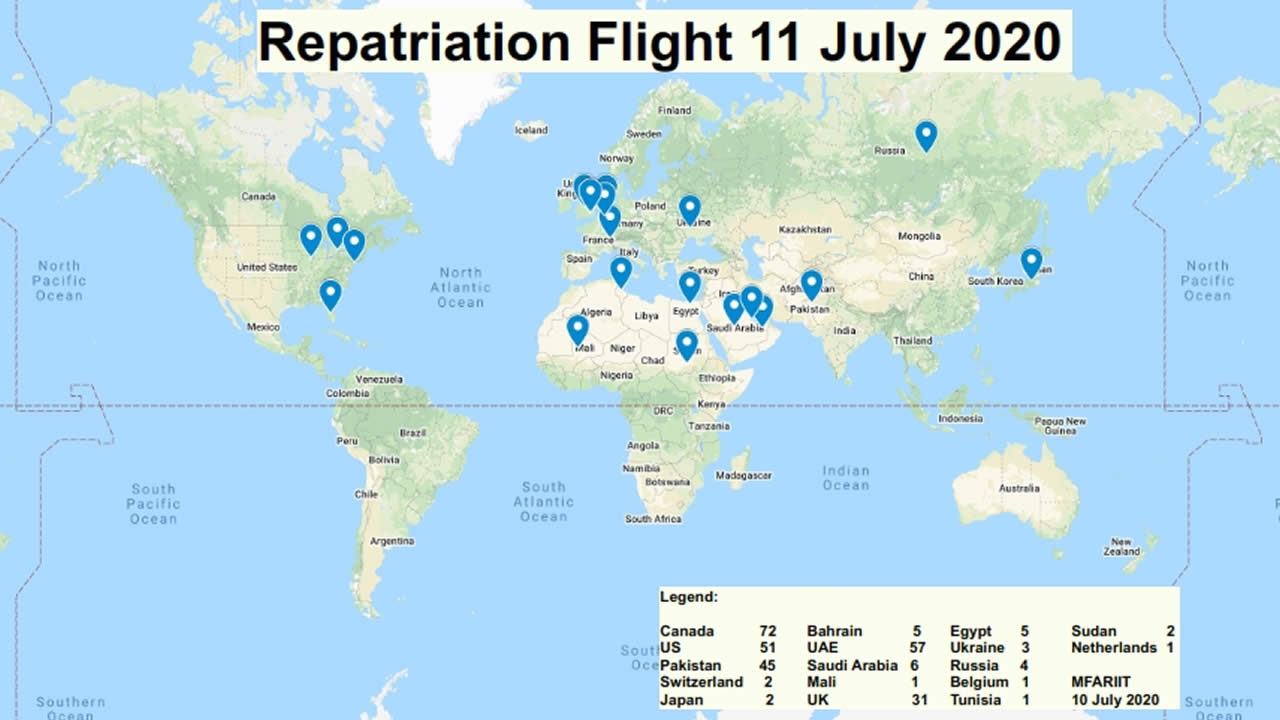 Ainsi, une liste de 289 passagers a été établie par les autorités. Cependant, huit personnes parmi ont été testées positives au Covid-19, six du Pakistan, une des Émirats arabes unis et une de l’Arabie saoudite. Par conséquent, ils ne peuvent faire partie du voyage, de même que les membres de la famille de la personne testée positive au Pakistan.