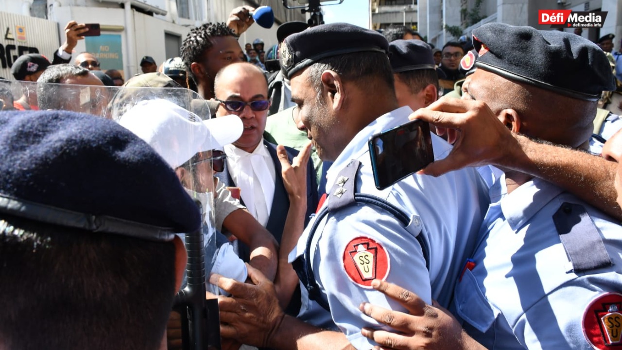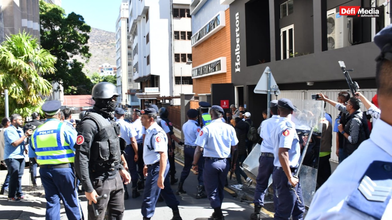 Voici quelques images d’une foule massée devant le tribunal de Port-Louis, cet après-midi.