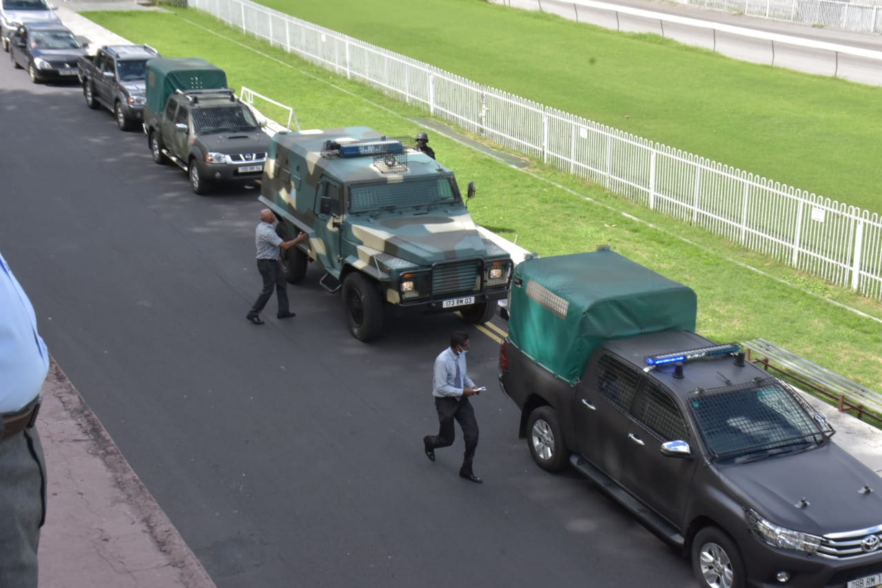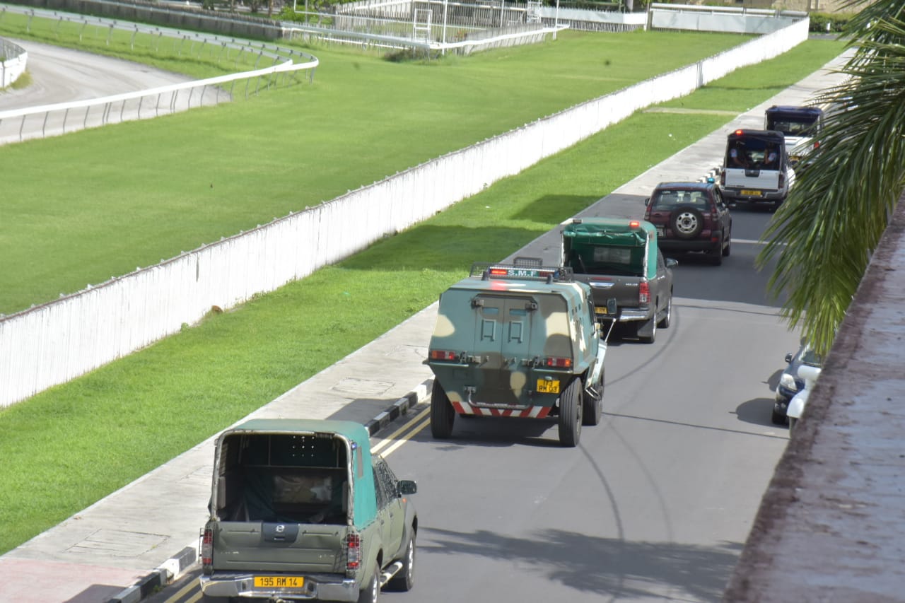 L’exercice de reconstitution des faits a débuté vers 9h 30. Des éléments de la Major Crime Investigation Team (MCIT), du Groupement d'Intervention de la Police Mauricienne (GIPM) et de la Special Supporting Unit (SSU) ont quitté les Casernes centrales, direction Vallée-Pitot.