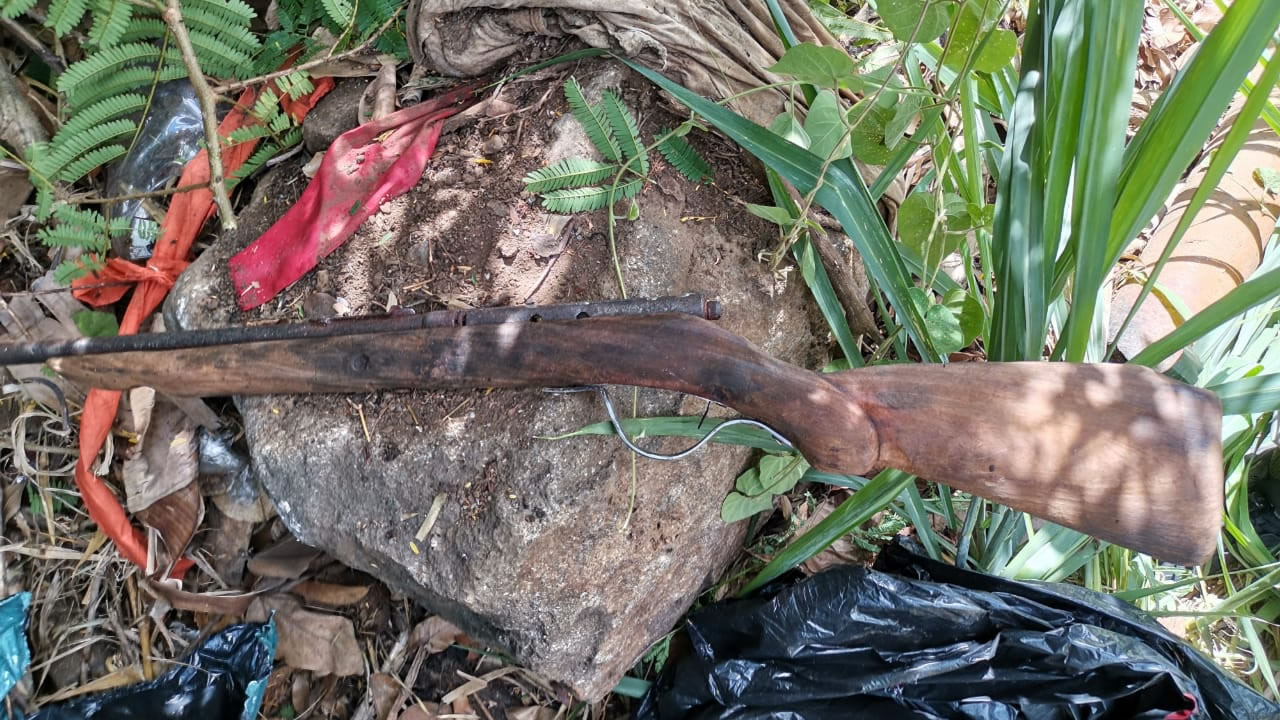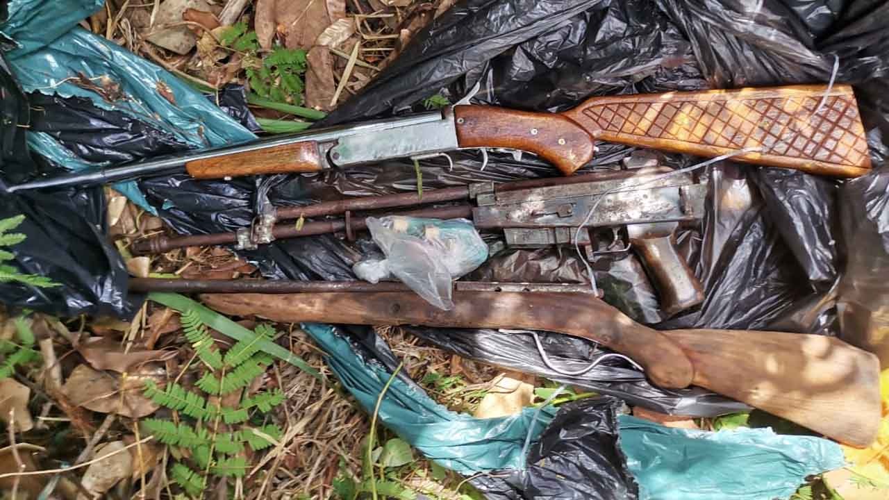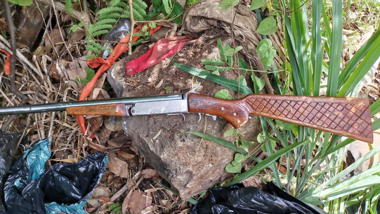 Deux fusils de chasse et un pistolet automatique de la marque ‘Adler’ de calibre 0,22 ont été retrouvés sur un terrain vague près d’une rivière, à Pierrefonds, Beaux-Songes, dans la matinée de ce samedi 23 janvier. Ces armes à feu étaient dissimulées dans un sac en raphia. De plus, 11 cartouches de 12 mm et 16 têtes de cartouches (‘live rounds bullet heads’) étaient dans deux autres sacs.