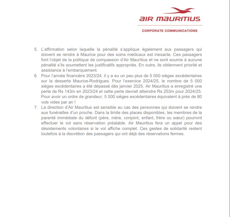 Air Mauritius invite donc les voyageurs à privilégier les réservations fermes.