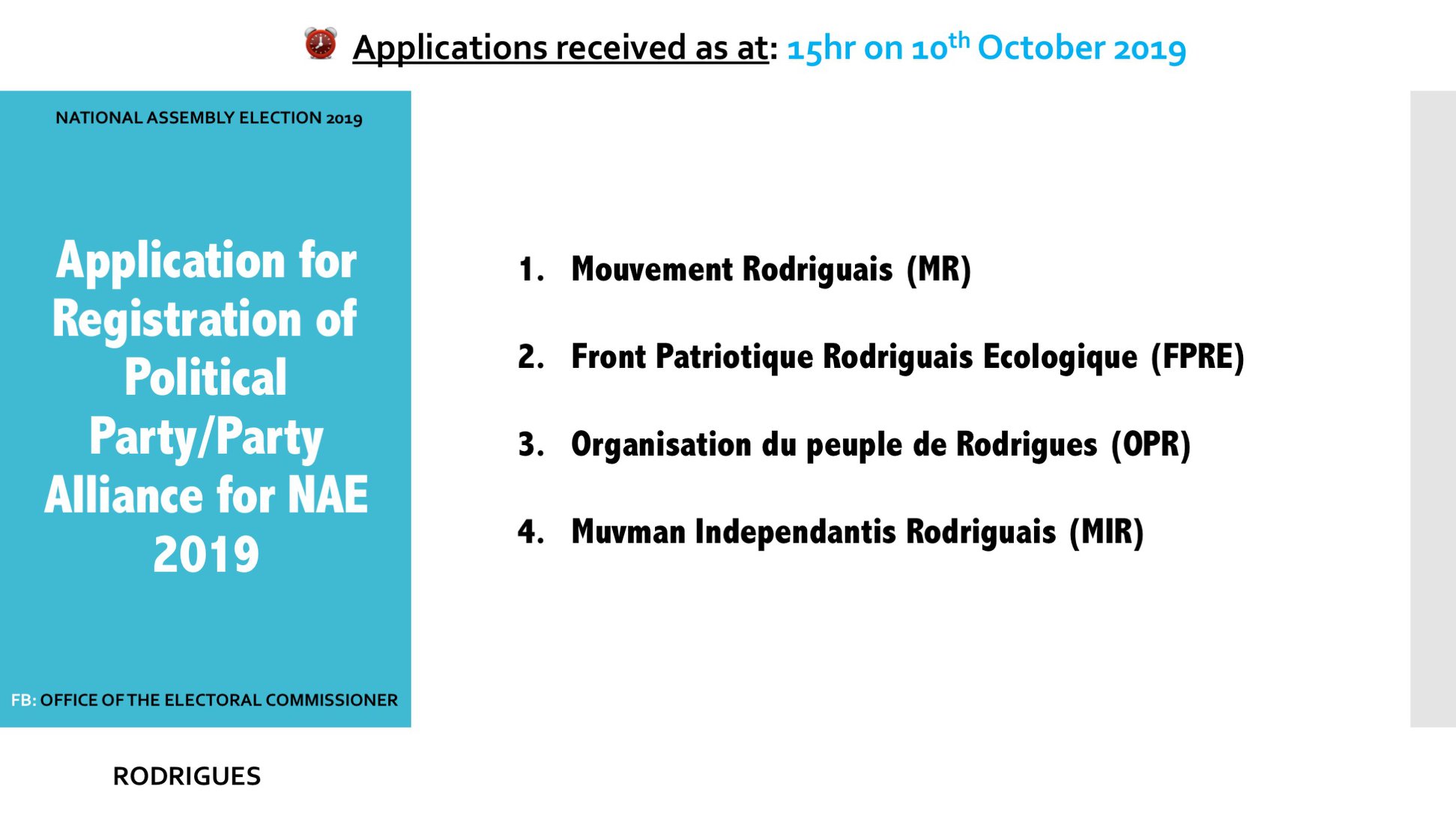 A Rodrigues, quatre partis politiques se sont enregistrés en marge des élections générales :