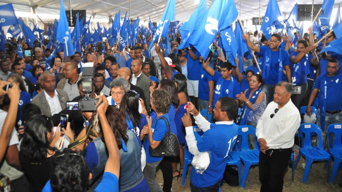 « Simply the best. » C’est sur cette emblématique chanson de Tina Turner que Xavier-Luc Duval a fait son entrée sous l’immense marquise installée dans la cour de l’école hôtelière à ébène. Le leader des bleus a eu du mal à se frayer un passage parmi la foule des partisans munis de drapeaux bleus flanqués de l’effigie du coq. Xavier-Luc Duval aura, d’ailleurs, eu droit à une standing ovation lorsqu’il a pris la parole sous les clameurs et les « Xavier Xavier ». Entre les chants, les danses et les démonstrations de slam, l’heure était à la fête.