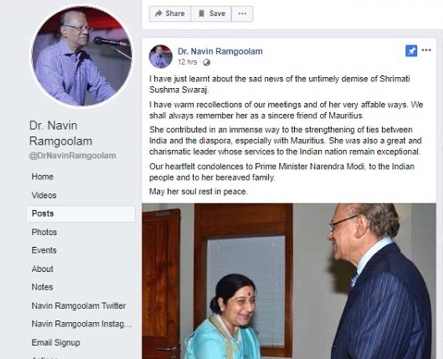 Le décès de l’ancienne ministre indienne des Affaires étrangères, Sushma Swaraj, a entraîné bon nombre d’hommages sur les réseaux sociaux à Maurice, notamment ceux des leaders politiques.