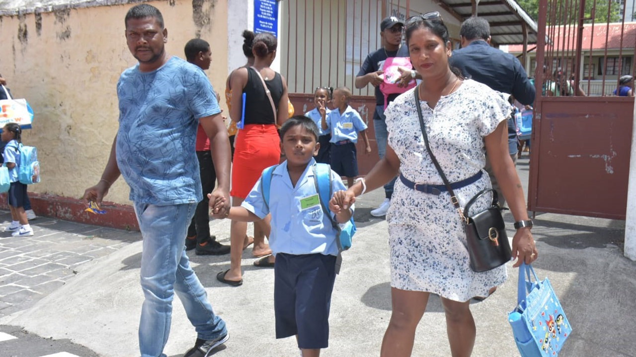 Entre appréhension et joie, de nombreux parents ont accompagné leurs enfants en ce premier jour. Certains ont été accompagnés par leurs frères ou sœurs aînés. Ils étaient nombreux dans la cour de l’école Notre-Dame-de-Bon- Secours RCA, rue Edith Cavell, Port-Louis, ce matin.