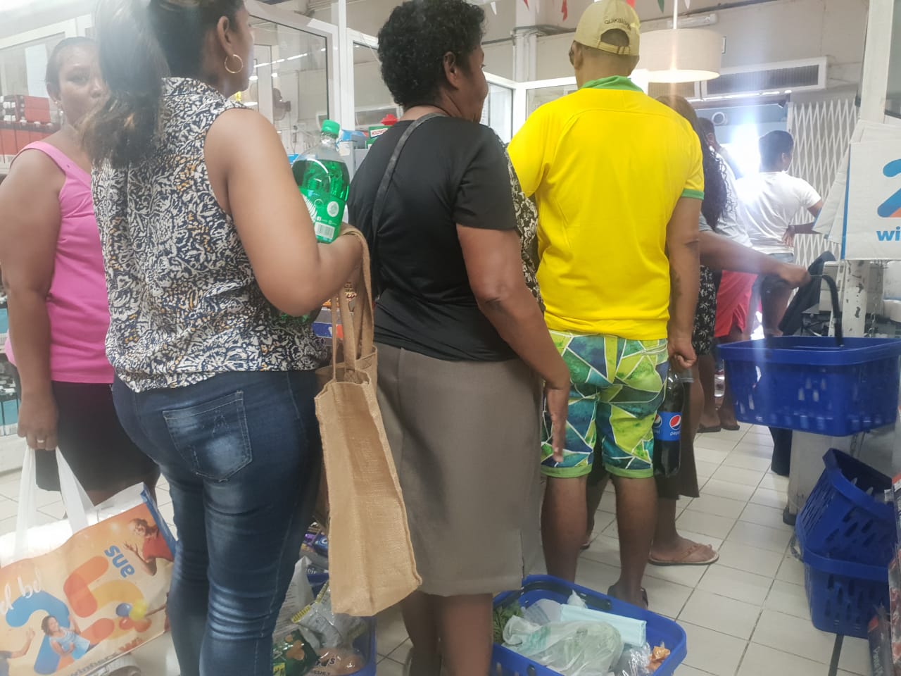 Cependant, c'est la ruée vers les supermarchés. Chacun essaie de faire un maximum d'achats possible à cause de l'arrivée de la dépression tropicale, qui devrait passer à moins de 100 km de Blue-Bay demain matin.
