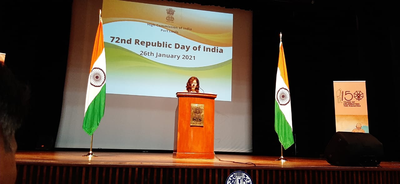 K. Nandini Singla y a aussi donné lecture du discours du Président de l’Inde Sri Ram Nath Kovind, prononcé à la veille du 72e anniversaire de la République de l’Inde à New Delhi.