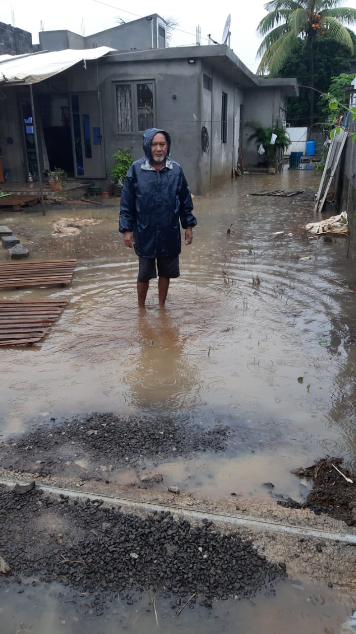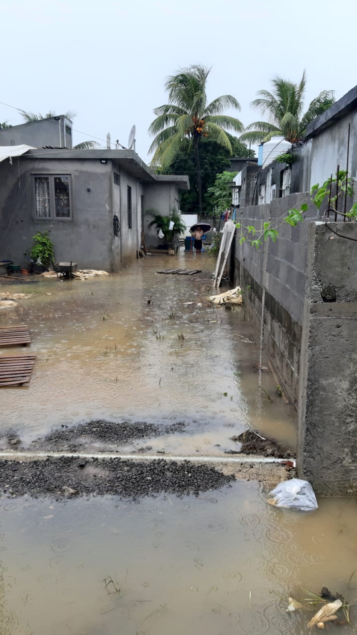 Illustration : les habitants de l’avenue Orchidée, qui sont de nouveau sous les eaux. Environ huit maisons sont touchées par les fortes averses, se désole Sobraty Sachindave, Chairman du Bramsthan Social Welfare Centre.