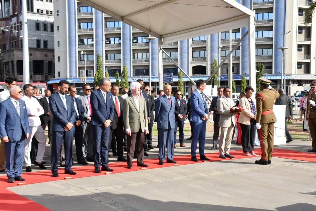 Cérémonie de dépôt de gerbes au pied de la statue de Sir Seewoosagur Ramgoolam, au Port-Louis Waterfront, par le Premier ministre Navin Ramgoolam, ce jeudi 18 septembre, à l’occasion du 125ᵉ anniversaire de sa naissance.