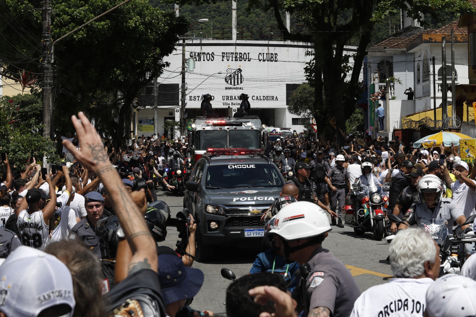 Le cortège a pour destination finale la dernière demeure du "Roi" du football, un mausolée au sein du plus grand cimetière vertical au monde, un immeuble de 14 étages avec vue sur le stade du Santos FC, club où le triple champion du monde a brillé de 1956 à 1974.