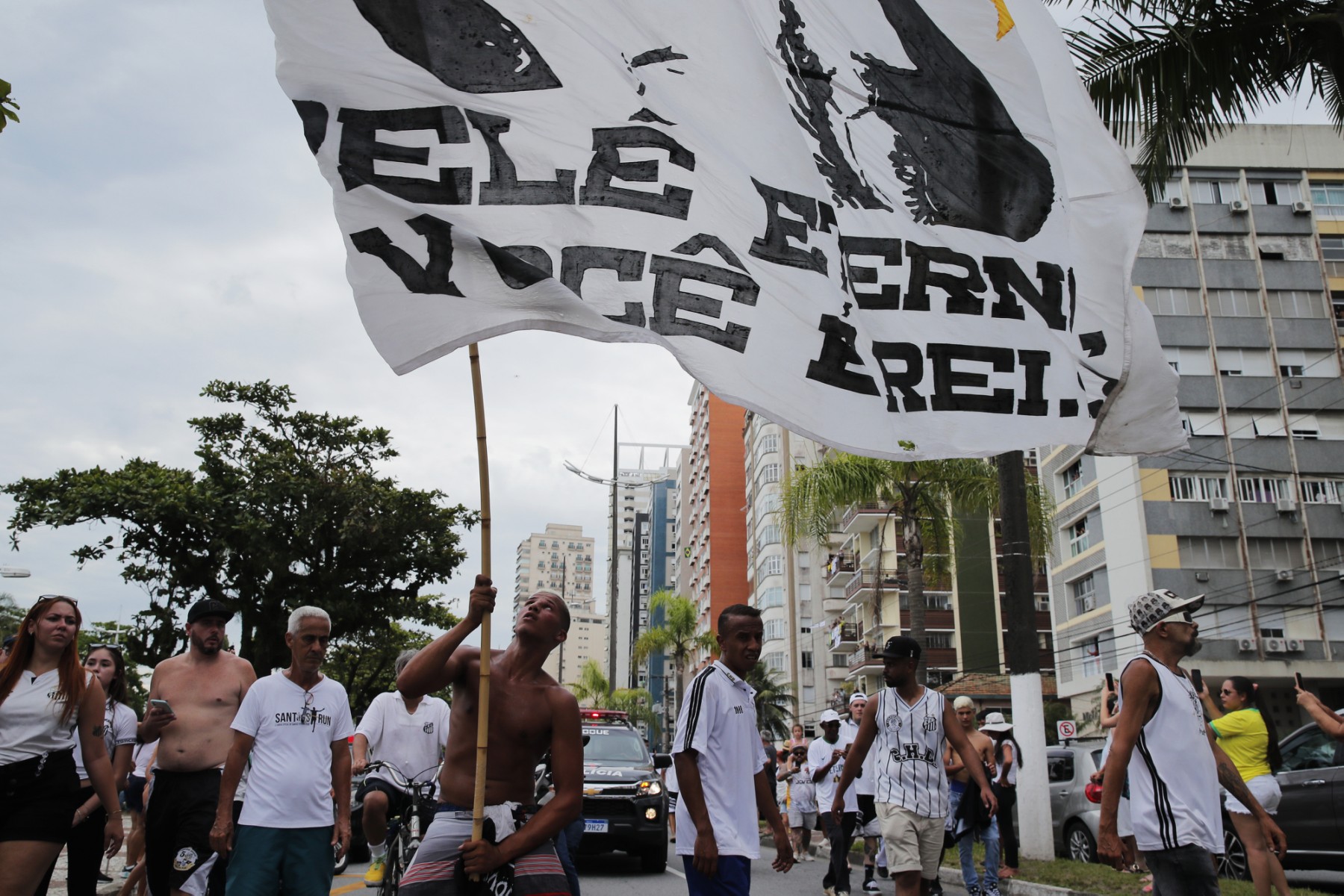 Le cercueil où repose la dépouille du "Roi" Pelé parcourt mardi les rues de Santos (sud-est) dans un cortège funèbre salué par la foule, à l'issue de la veillée qui a attiré plus de 230.000 fans dans le stade des premiers exploits du footballeur brésilien.