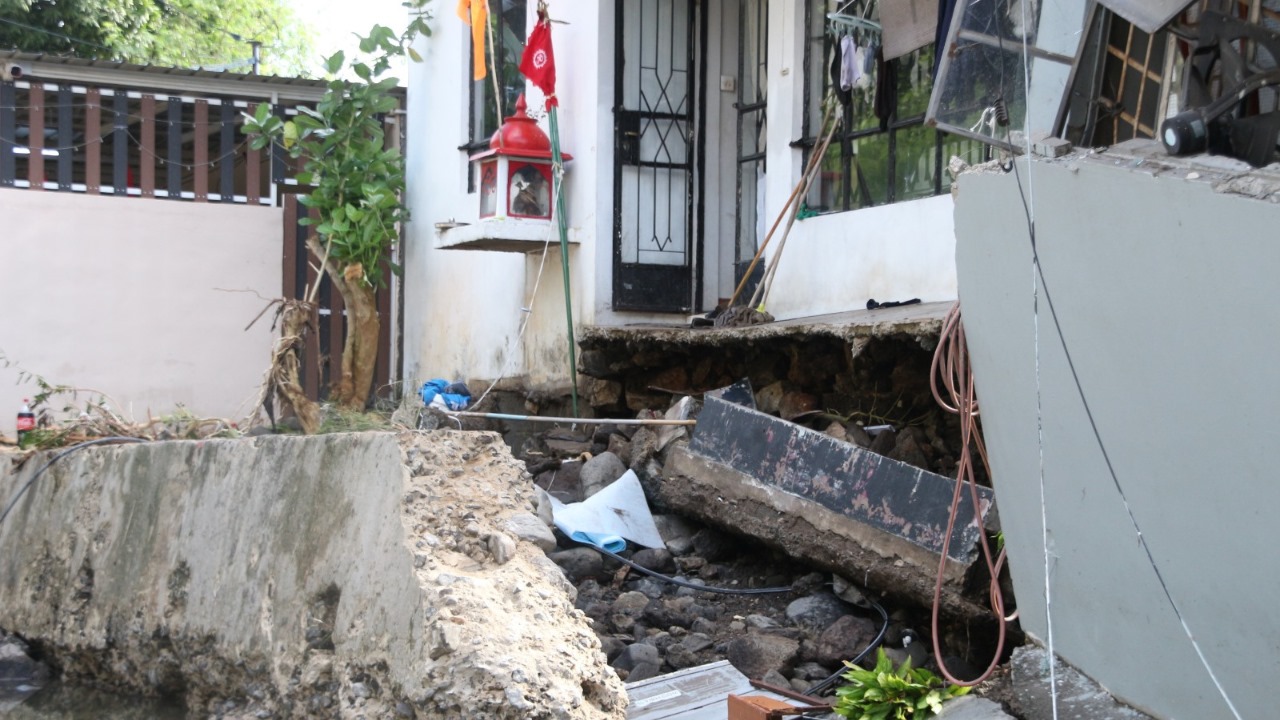 Les conséquences des pluies torrentielles, le 21 avril 2024 ont été fatales pour la famille Ramsahye ( Dholl Puri Maraz) à rue Swami Sivananda à Tranquebar. Leur maison s’est effondrée soudainement sur l’asphalte. Cette famille de huit membres a tout perdu. De plus, c’est devenu un danger pour eux d’y avoir accès. Heureusement que les membres de cette famille ont trouvé refuge chez un voisin. Maintenant c’est aux autorités d’assurer la sécurité de ceux qui empruntent cette ruelle.
