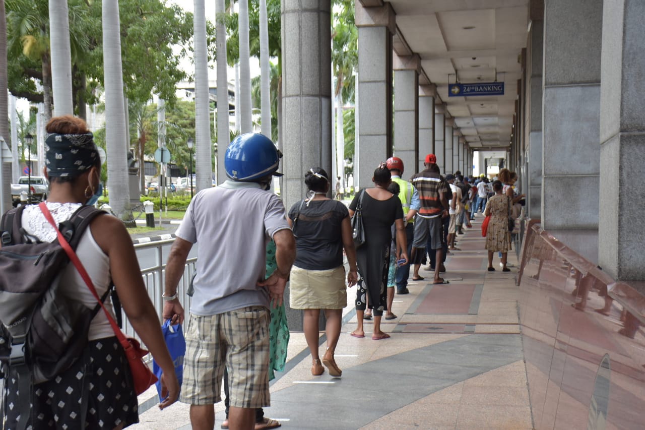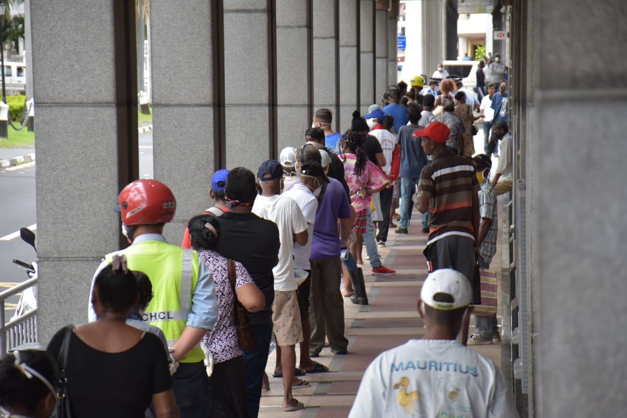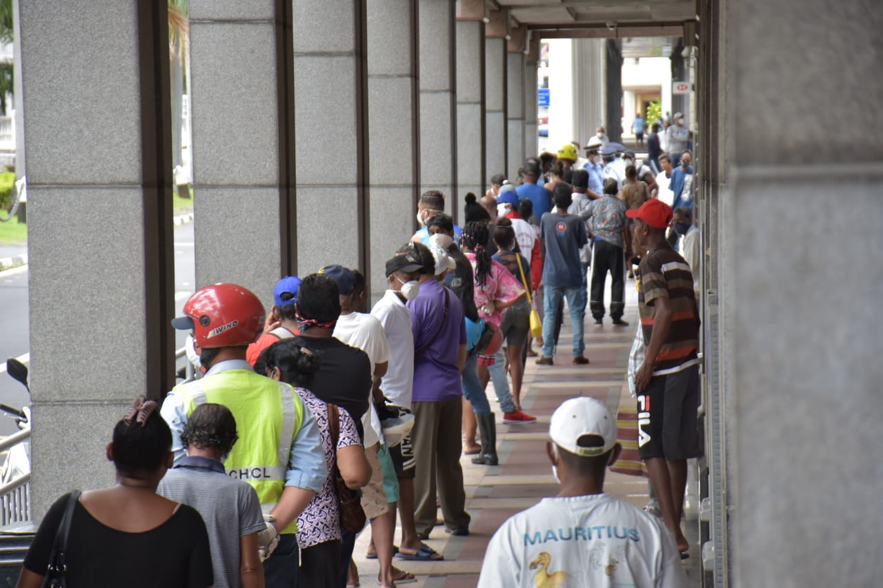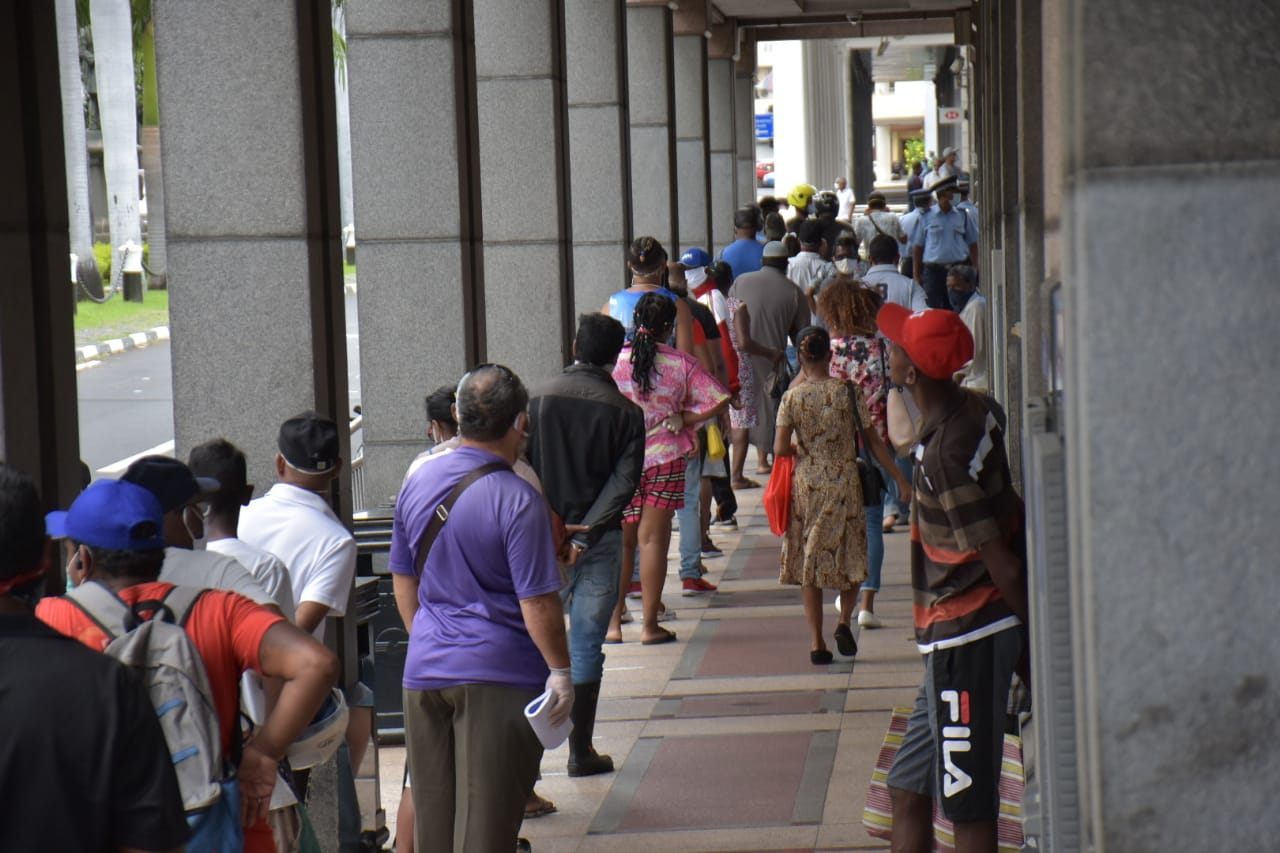 L’attente…en file d’indienne ! C’est ce qu’on pouvait constater devant la State Bank of Mauritius (SBM) Tower à la Place d’Armes, Port-Louis ce vendredi matin 24 avril.