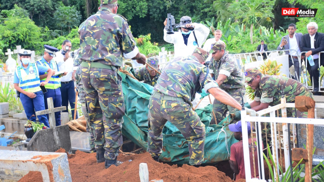 Le corps de Steve Jacquelin Juliette a été exhumé ce jeudi matin 24 avril, au cimetière de Poudre-d’Or. L’opération s’est déroulée en présence de la police, des éléments de la Special Mobile Force, de Me Nataraj Muneesamy, représentant du Bureau du Directeur des Poursuites Publiques (DPP), ainsi que d’autres hommes de loi dont les services ont été retenus par la famille du défunt, notamment Mes Rama Valayden et Anoup Goodary, entre autres.
