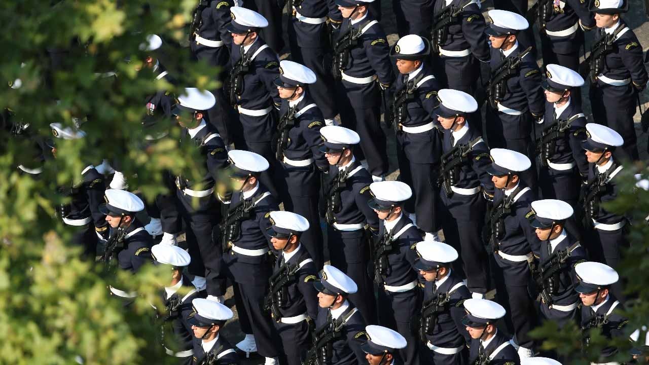 Les drapeaux des deux pays asiatiques ont ouvert le défilé aux côtés de l'emblème français, escortés par sept soldats de chaque nationalité.