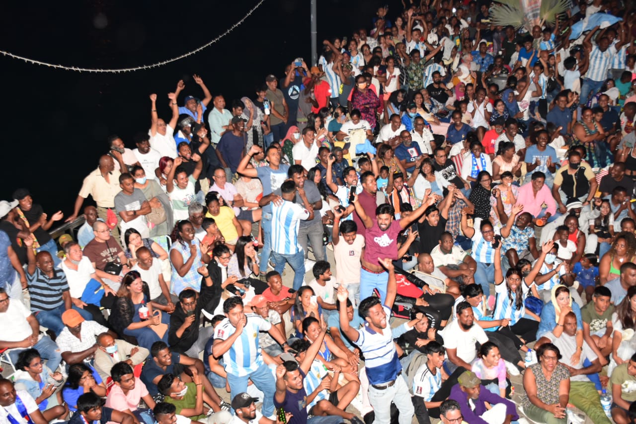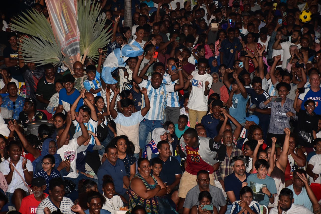 Lionel Messi a ouvert le score sur penalty à la 23e min de jeu dans une ambiance de tonnerre au Port-Louis Waterfront. La finale France v Argentine est diffusée sur écran géant. Le public a répondu en grand nombre à l'invitation du Défi Media Group.