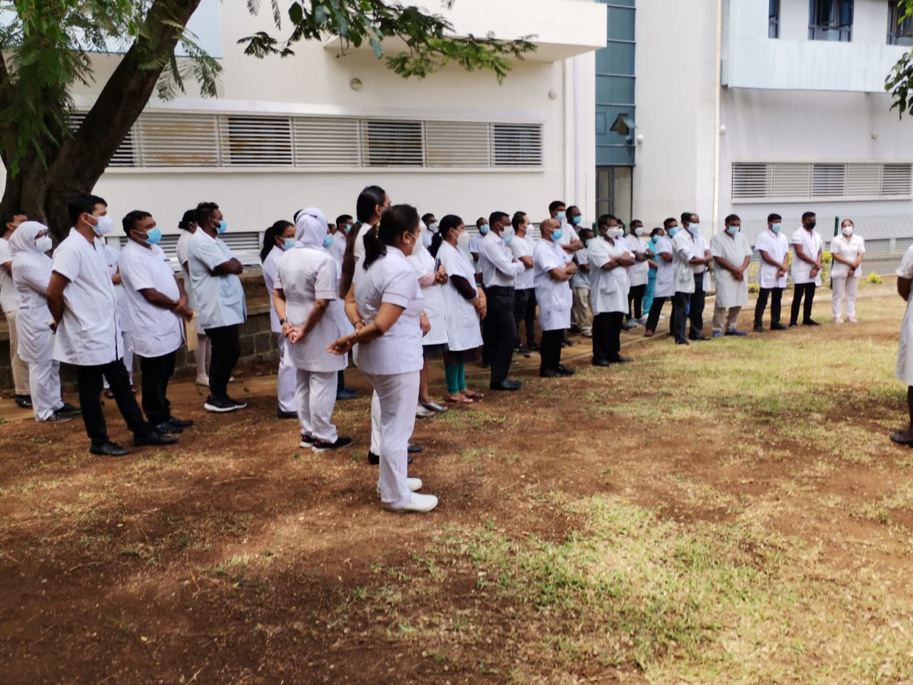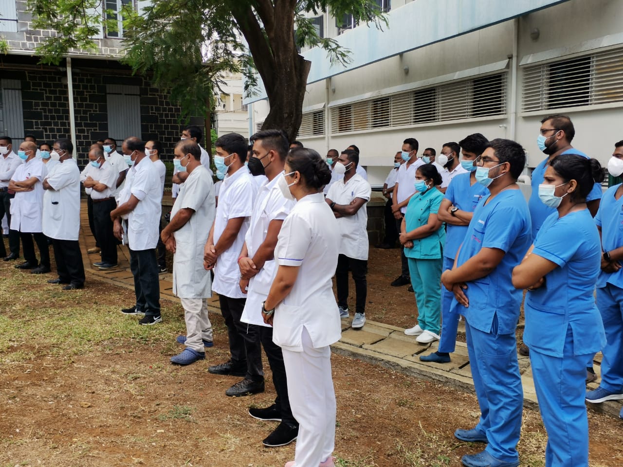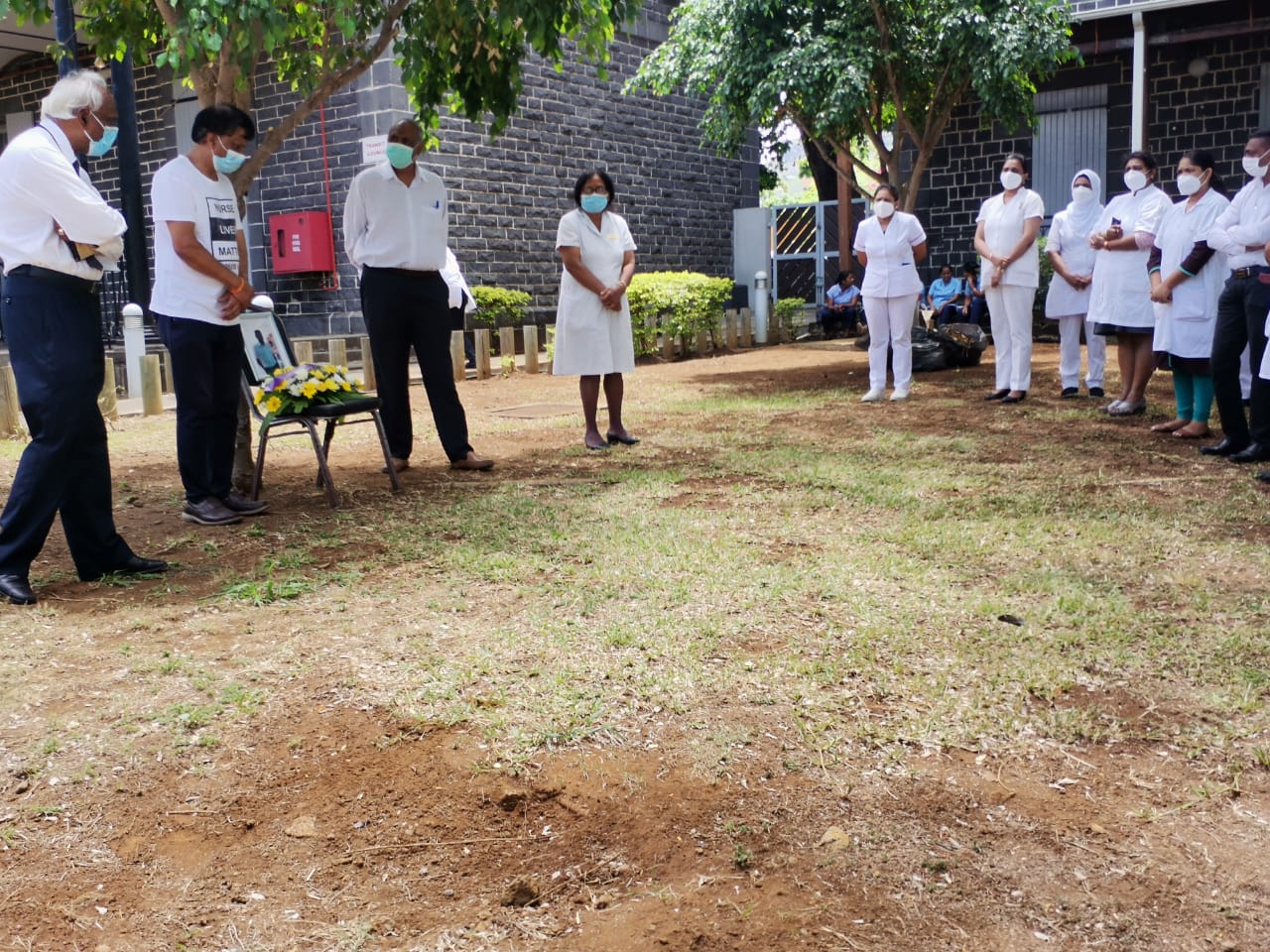 Une minute de silence a été observée par des infirmiers de l’hôpital Dr A.G Jeetoo ce mercredi 22 décembre. Ce, en hommage à Vythilingum Mayeven Logeedassen, aussi appelé affectueusement « Toto ». L’ "acting charge nurse" de 51 ans, qui était en isolement chez lui à Mont-Roches après avoir été testé positif à la Covid-19, est décédé hier, mardi 21 décembre.