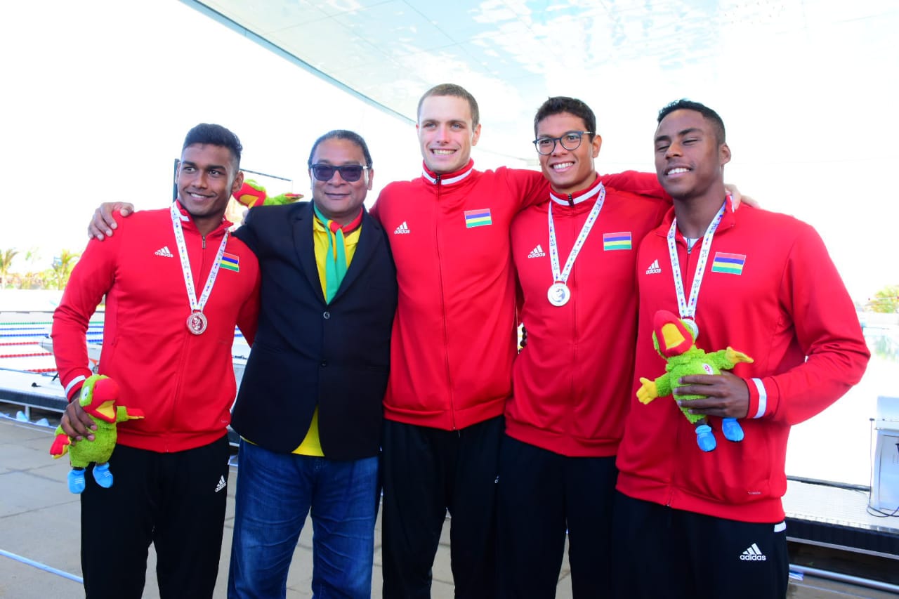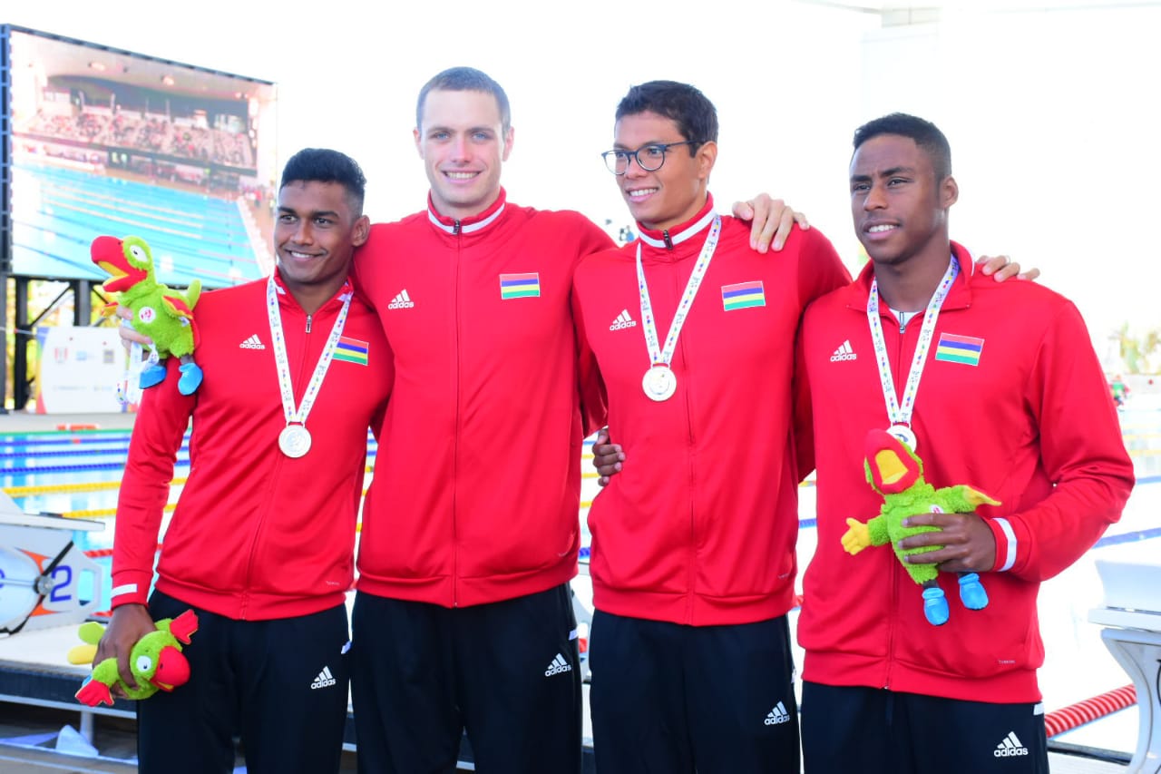 L'hymne national a retenti ce samedi matin à la piscine de Côte-D'or lors de la cérémonie de remise de médailles. Maurice a remporté ses deux premières médailles d’or jeudi. Le nageur Bradley Vincent a décroché l’or lors de la finale du 50 m nage libre dans le bassin olympique de la piscine de Côte-D’Or.