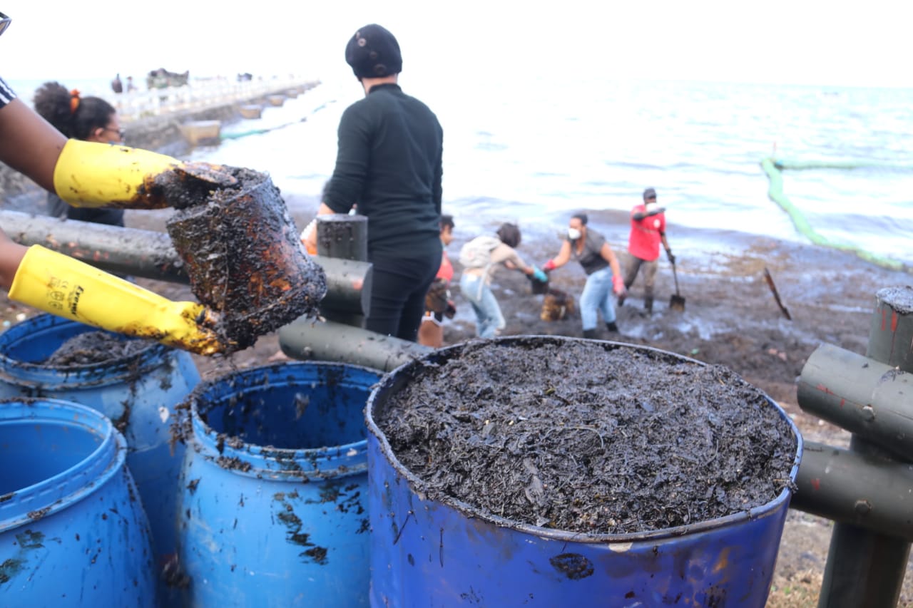 À Bois-des-Amourettes, des traces de fioul ont été décelées dans le lagon. Sans plus tarder, des volontaires s’y sont dépêchés avec des boudins flottants en paille afin de les placer dans l'eau pour tenter de contenir la marée noire.