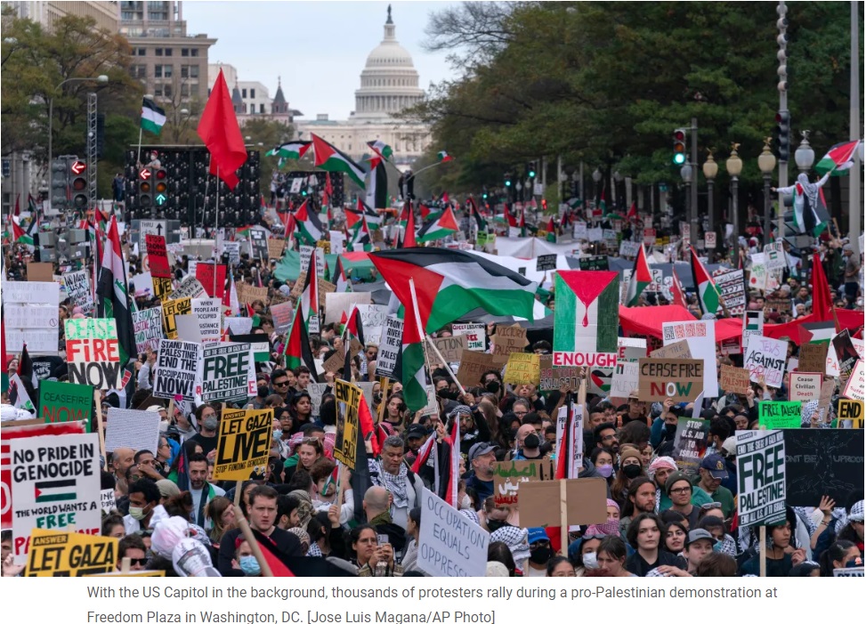 Des dizaines de milliers de personnes se sont rassemblées dans la capitale des États-Unis pour exiger un cessez-le-feu à Gaza, alors que Washington continue de résister aux appels à la fin de la guerre malgré le nombre croissant de morts.