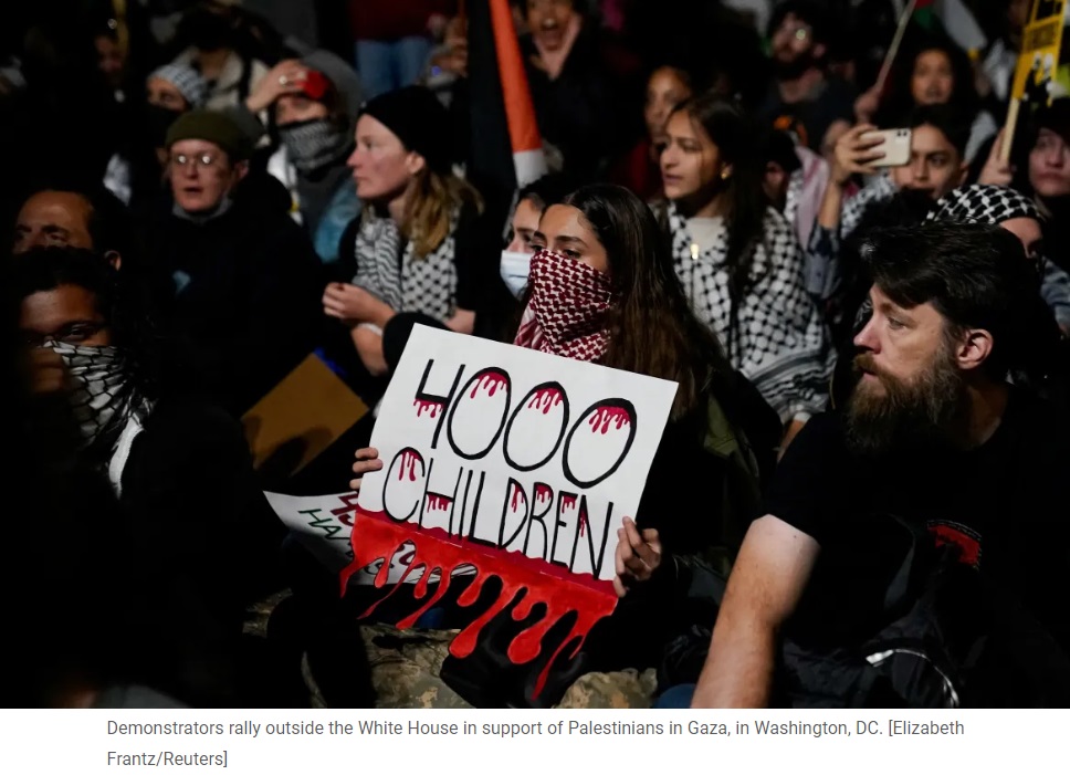 "Biden, Biden, tu ne peux pas te cacher, nous t'accusons de génocide", ont scandé les manifestants.