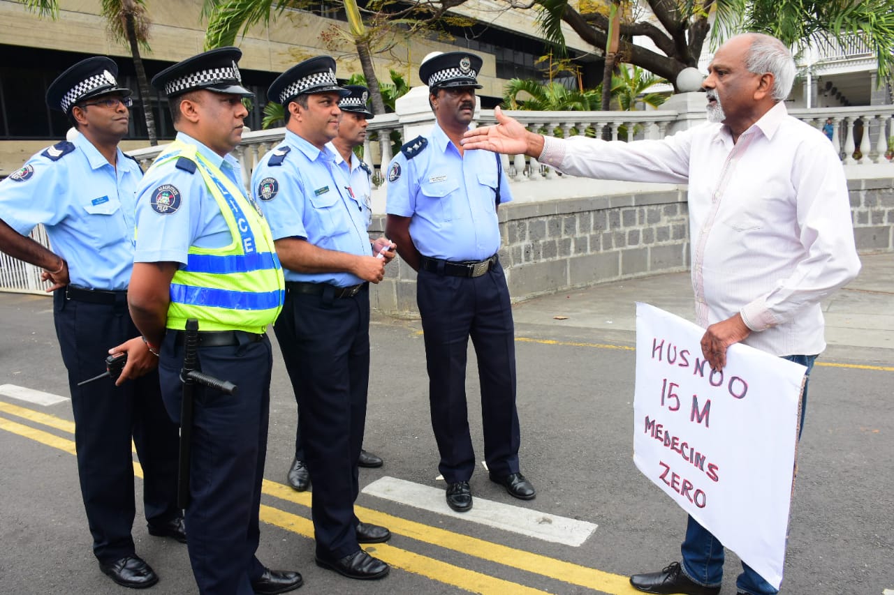 «Medecins pe reclam zot drwa acqui», «La santé bien malade, bientôt dans ICU». Ce sont les slogans scandés par des médecins généralistes devant l’Hôtel du gouvernement, Port-Louis, ce mercredi après-midi, 18 septembre.