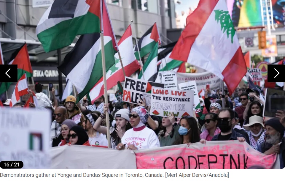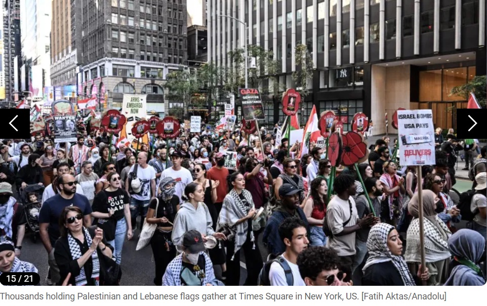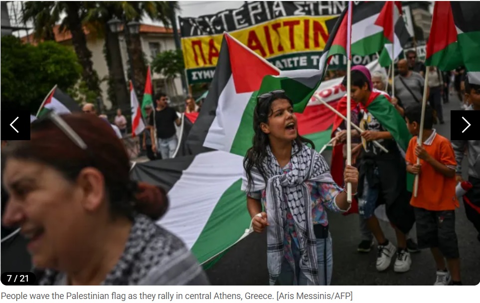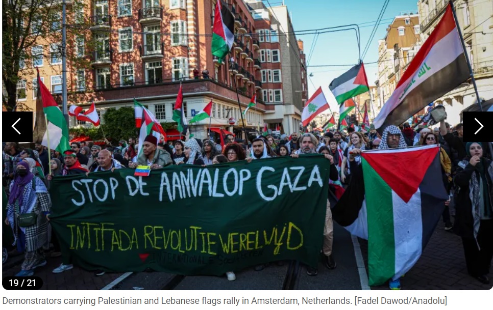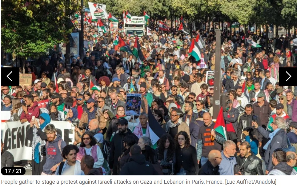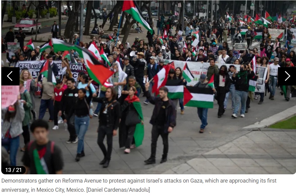 Des dizaines de milliers de personnes se sont rassemblées dans les rues des grandes villes du monde pour condamner les opérations militaires israéliennes à Gaza, à l'approche du premier anniversaire de la guerre dans ce territoire palestinien. Le journal en ligne Al Jazeera a publié des images de ces manifestations pro-palestiniennes sur son site, dimanche. Vous trouverez ci-dessous les images :