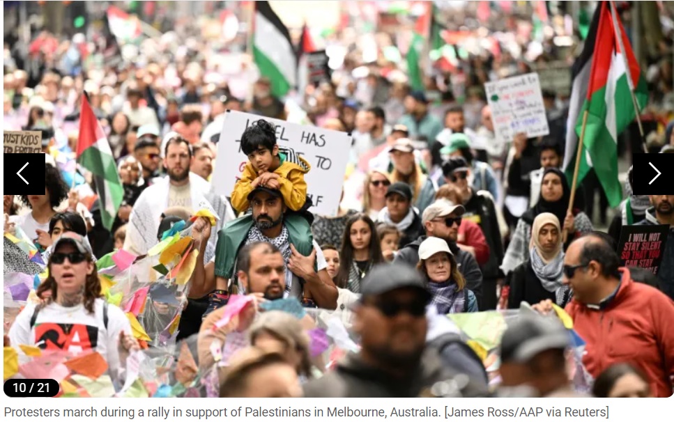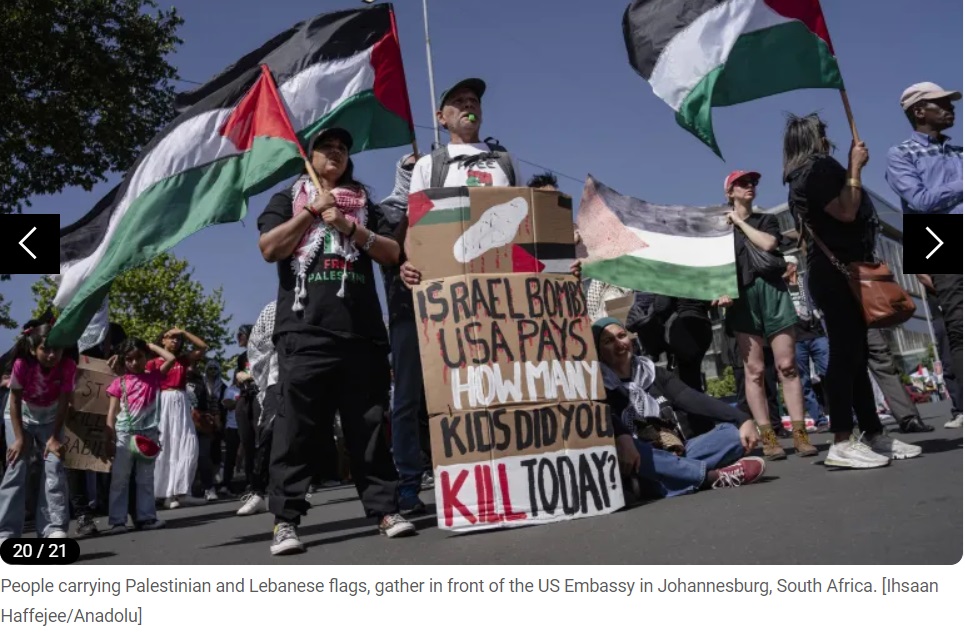 À Cape Town, en Afrique du Sud, des centaines de personnes ont marché vers le parlement, scandant : « Israël est un État raciste ! » et « Nous sommes tous palestiniens ! » Des marches pro-Gaza étaient également prévues samedi à Johannesburg et Durban.