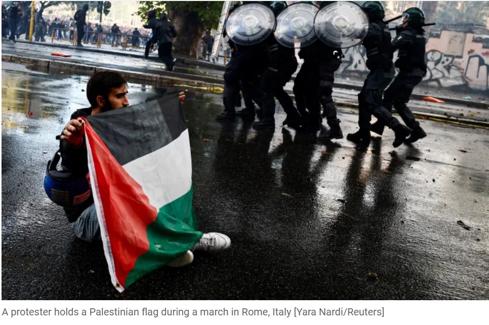La police a utilisé des gaz lacrymogènes et des canons à eau pour disperser les manifestants dans la capitale italienne, Rome, alors que leur manifestation est devenue violente, ont indiqué les autorités.