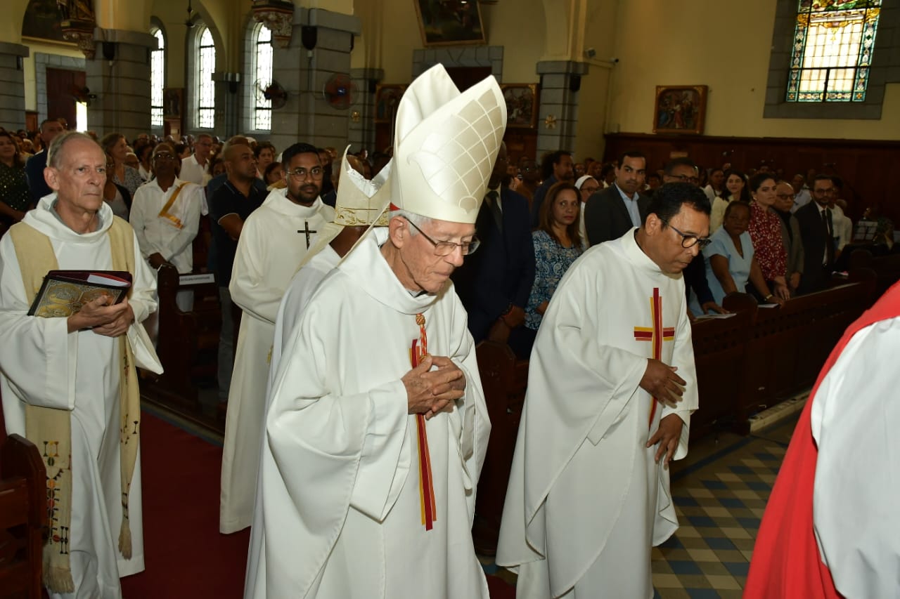 La messe de la Saint-Louis, présidée par Mgr Jean Michaël Durhône, s’est tenue ce lundi matin 25 août à la cathédrale, en présence de plusieurs personnalités, dont le Premier ministre par intérim, Paul Bérenger, le cardinal Maurice Piat, le leader de l’opposition, Joe Lesjongard, le président de la République par intérim, Robert Hungley, la Speaker de l'Assemblée nationale, Shirin Aumeeruddy-Cziffra ainsi que d’autres parlementaires et des membres du corps diplomatique. L’homélie a été prononcée par le père Pierre Piat.
