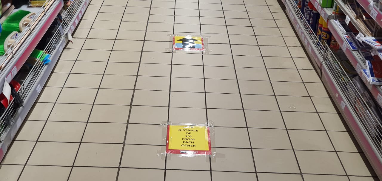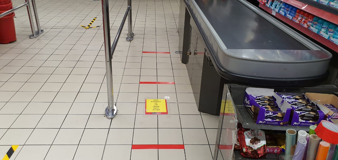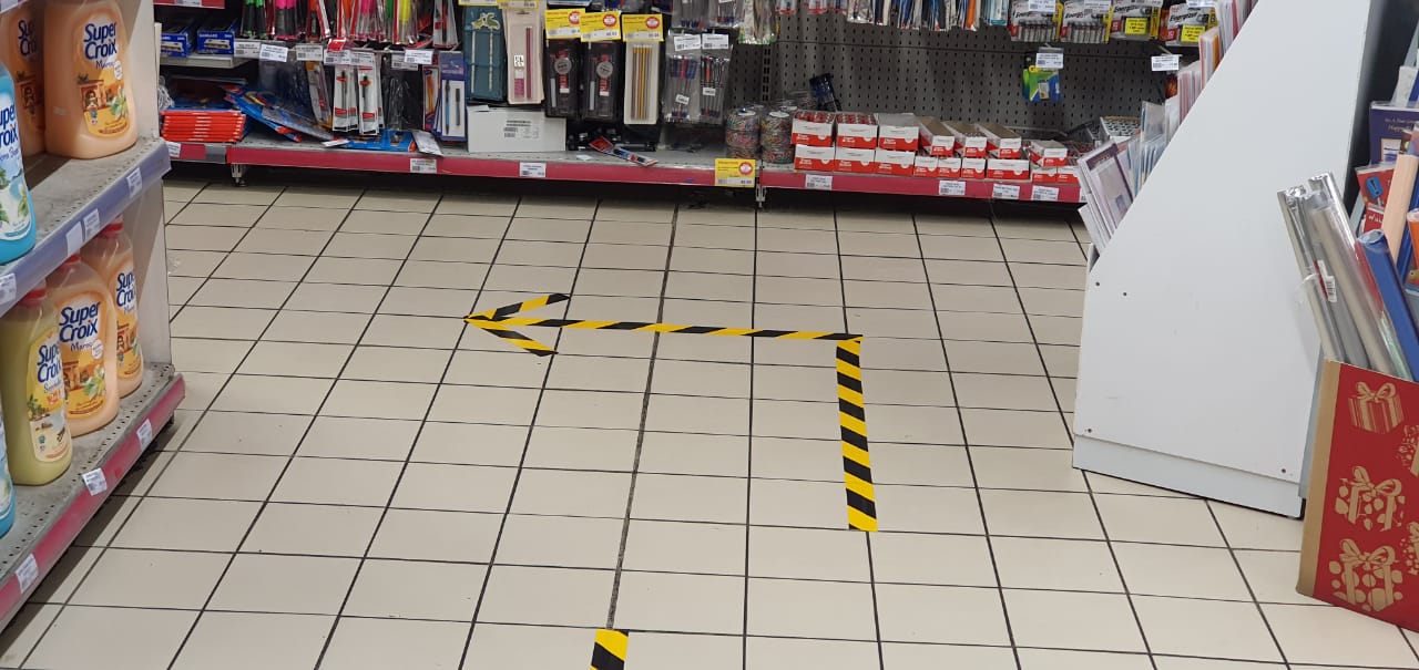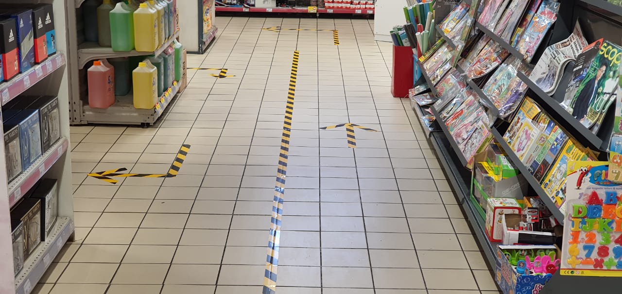 Dans les supérettes, les marquages au sol ont été réintroduits pour contrôler le mouvement des consommateurs, afin de respecter le ‘social distancing’ et autres gestes barrières. Par ailleurs, les caddies sont désinfectés.