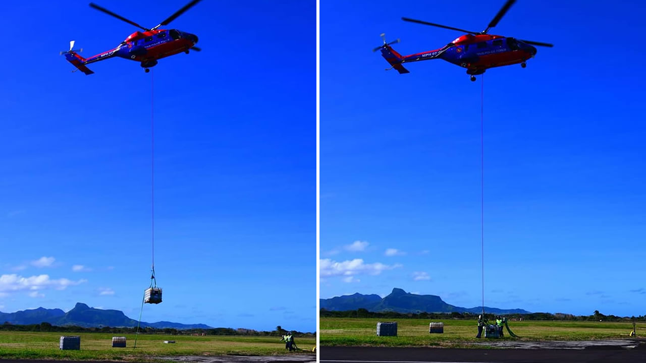[En images] Pompage du fioul du Wakashio : la Police Helicopter Squadron à pied d’œuvre