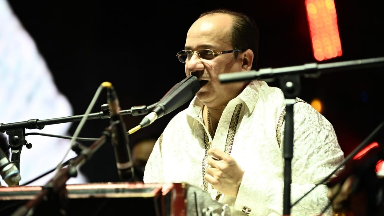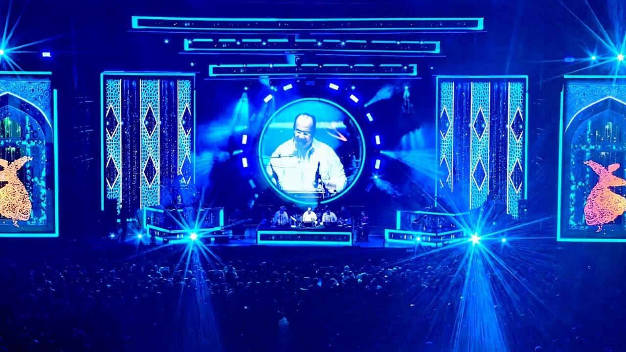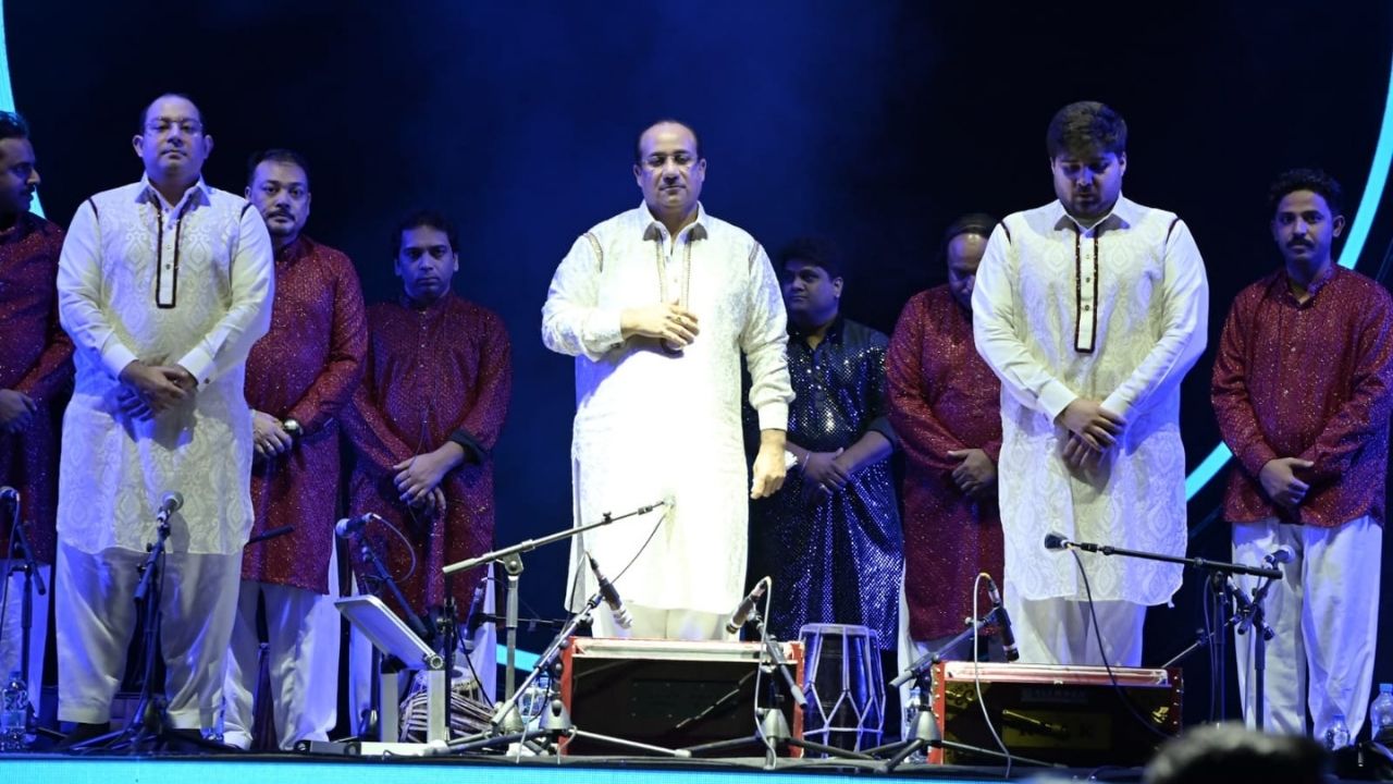 "Je suis reconnaissant que vous êtes présents en grand nombre ici", dit le chanteur. Il ne manque pas de faire un clin d'oeil à son oncle et mentor feu Nusrat Fateh Ali Khan décédé le 16 août 1997. Il lui rend hommage en entonnant un des ses qawwali populaires "Allah Hoo Allah Hoo" en jouant son instrument de prédilection - le harmonium.