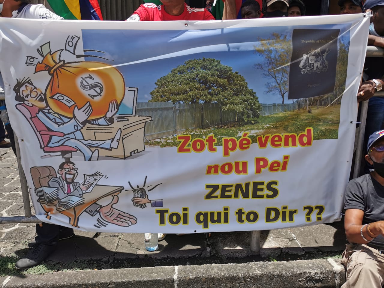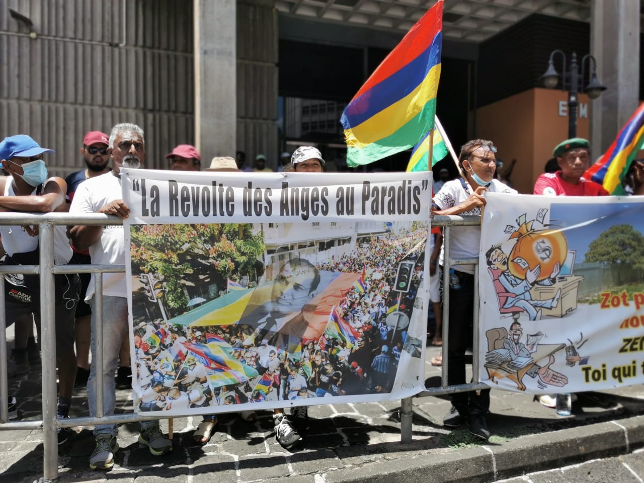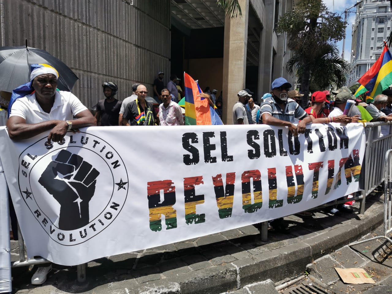 On peut lire des slogans comme « Sel solution : révolution », « Zot pe vend nou pei. Zeness-toi qui to dir ?? », « La révolte des anges au paradis » ou encore « Gouvernement Jugnauth, dehors ».