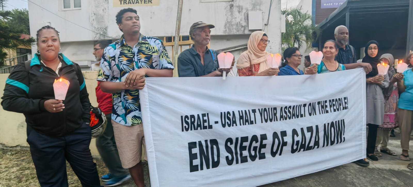 Le groupe Solidarite Morisyin Avek Lepep Palestinien dit non à « l'apartheid israélien ». Cela a été dit lors d'une réunion symbolique de soutien au peuple palestinien au siège de Lalit à Grande-Rivière-Nord-Ouest cet après-midi. L'ancien président de la République, Cassam Uteem, a appelé à un cessez-le-feu immédiat lors de son discours. Il a aussi lancé un appel pressant à la communauté internationale pour qu'elle agisse, « sans quoi nous serons témoins de l'extermination du peuple palestinien ».