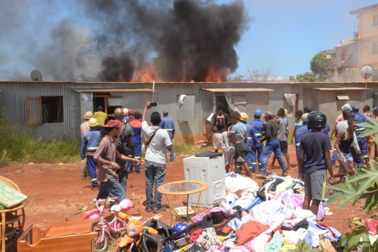 Une épaisse fumée noire est visible à Baie-du-Tombeau. Elle émane d'un violent incendie qui a éclaté à Cité Longère, Baie-du-Tombeau, ce mercredi matin 20 novembre. Au moins douze maisons faites de tôles et de bois sont la proie des flammes.
