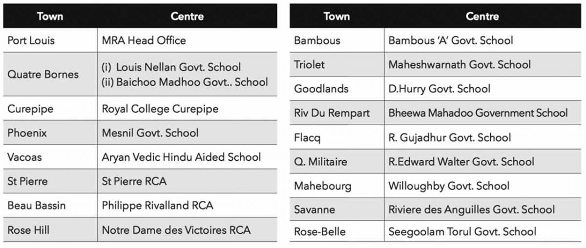 Une centaine de fonctionnaires de la MRA seront mobilisés ce samedi 24 et dimanche 25 septembre dans 18 centres FITA (voir tableau) répartis dans plusieurs régions de l’île pour aider les contribuables à remplir leurs formulaires en ligne. Ces centres seront ouverts de 8 h 30 à 16 heures. Pour tout renseignement sur la soumission des fiches par voie électronique, les contribuables peuvent également appeler jusqu’à 21 heures le service hotline de la MRA sur le 207 6010.