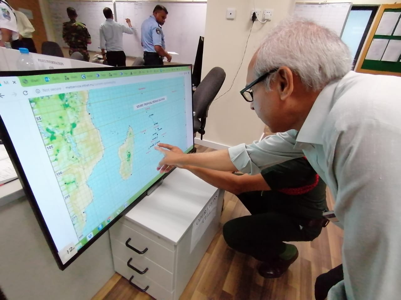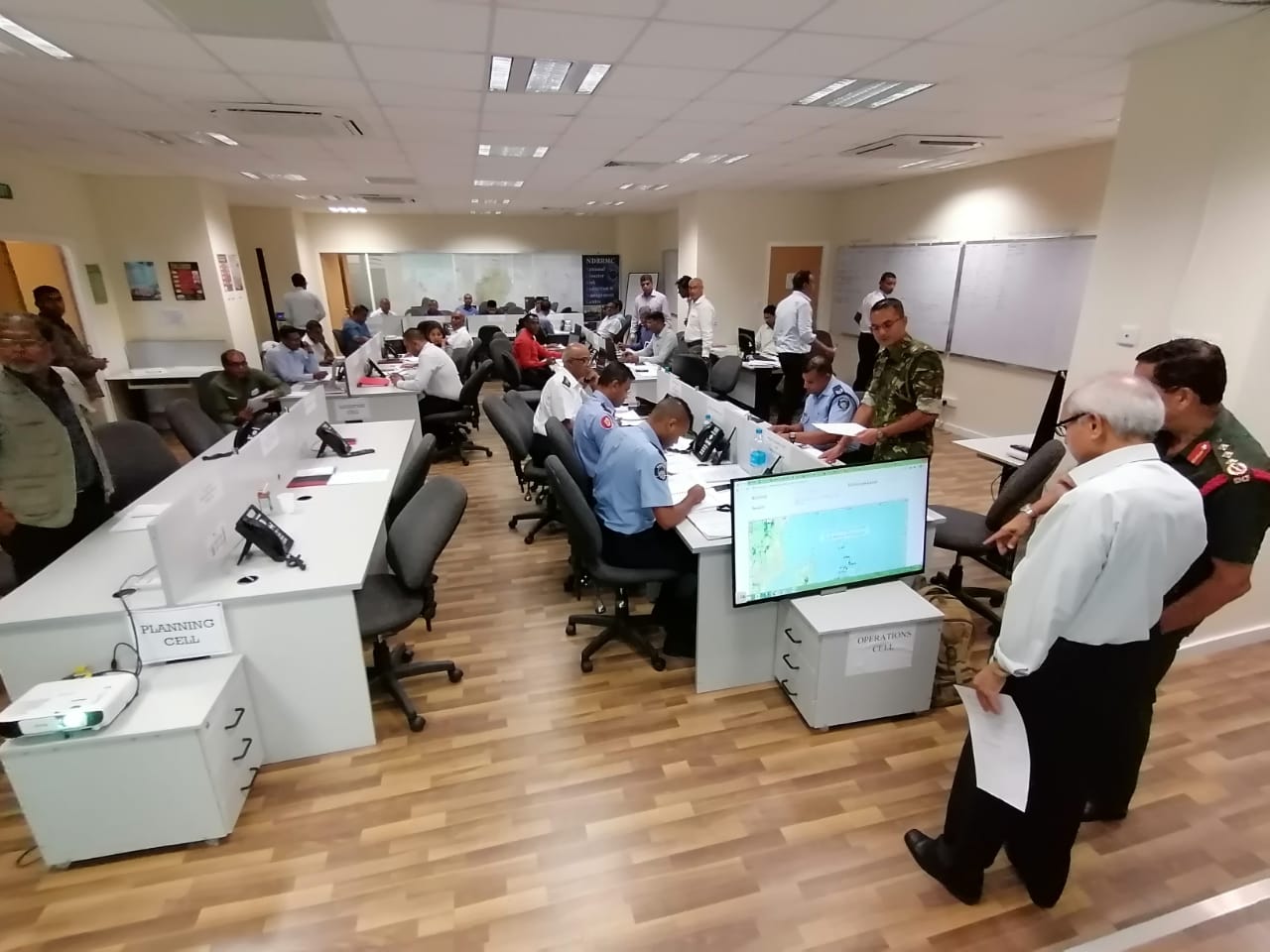 Le vice-Premier ministre, Anwar Husnoo, se trouve actuellement au quartier général de la NEOC. Il se concerte avec le commandant de la Special Mobile Force (SMF), Khemraj Servansingh, qui est aussi l’Officer-in-charge du National Disaster and Risk Reduction Management Centre.