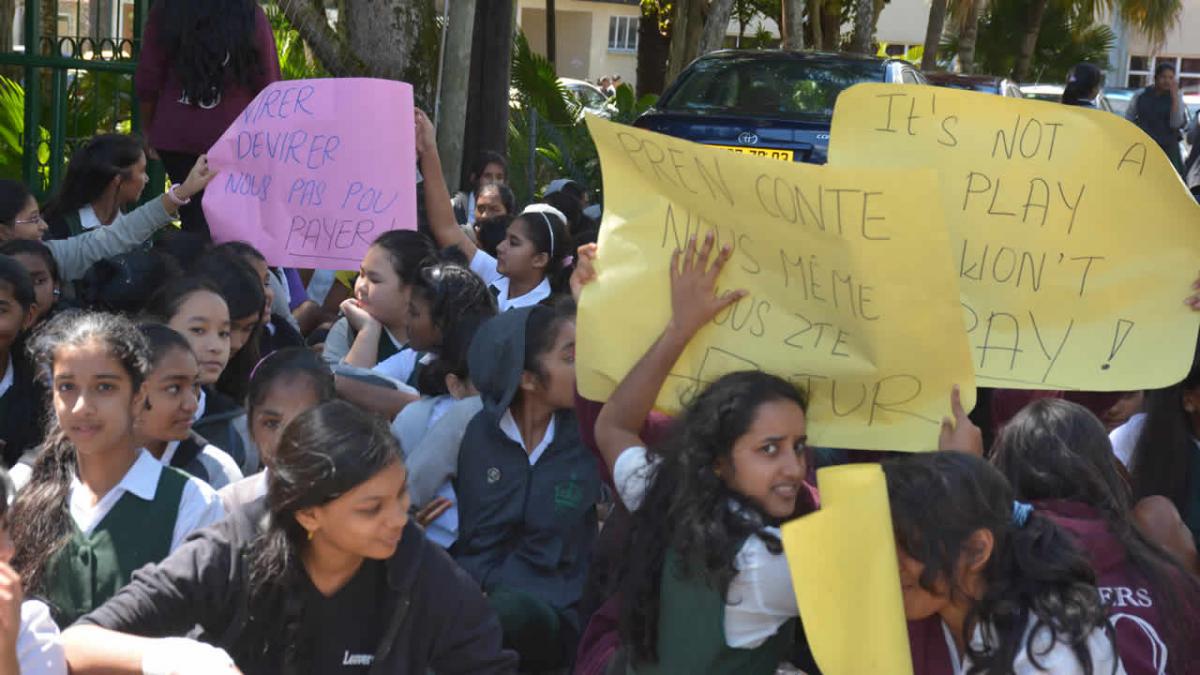 « Nou pa dakor. Nou pa pou paye. Devire mam », ont scandé les élèves du collège Lady Sushil Ramgoolam qui se sont massées devant le portail de leur établissement. Dans la foulée, elles ont réclamé la démission de la ministre de l’Éducation Leela Devi Dookun-Luchoomun. À l’instar de Natasha qui est en Upper Six. « Le gouvernement nous avait fait croire qu’il penserait toujours au bien-être de la société. La ministre de l’Éducation n’est pas solidaire des élèves. Elle doit démissionner », a-t-elle lancé.