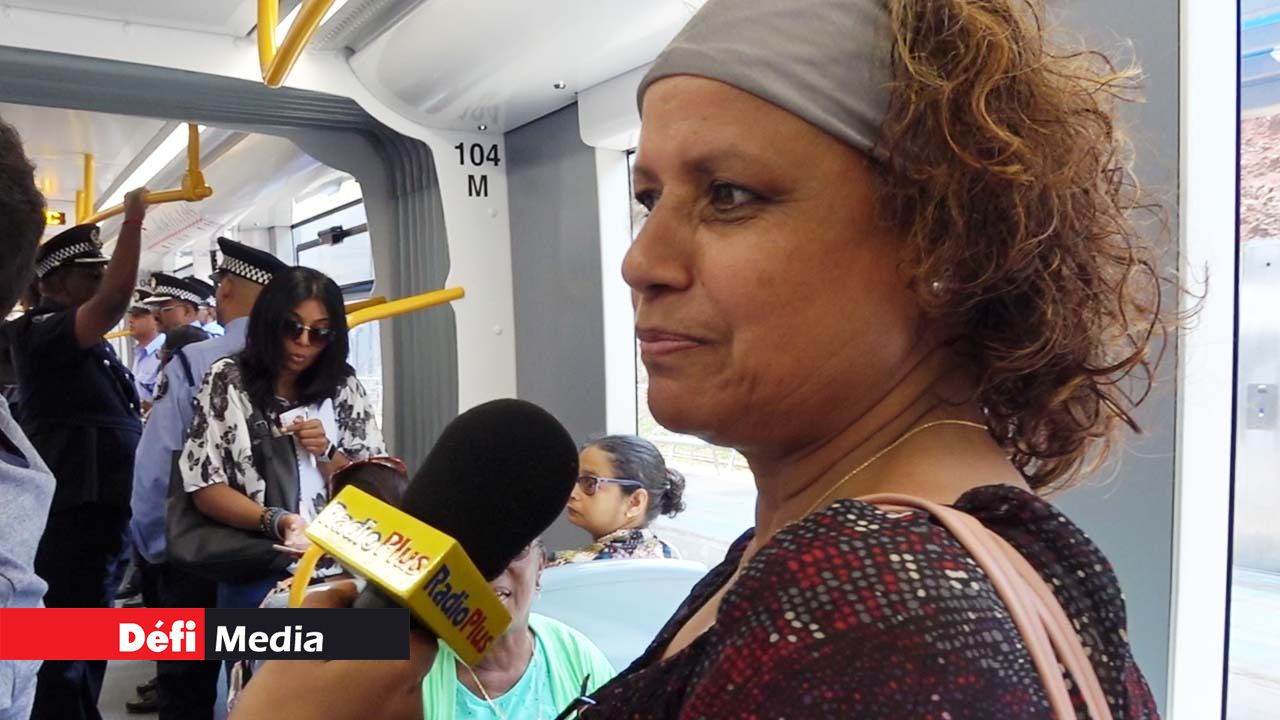 La passagère, Rojama, dit être très «contente» d'avoir pu voyager dans le Metro Express : «Kan nou ti pe al travay, tou letan nou ti pe galoup deryer bis. Si nou rate bis, nou rant en retard ».