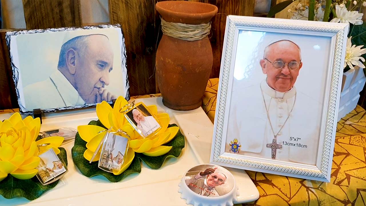 Avec la venue du Pape François à Maurice en septembre prochain, Doreen a vu en cet événement une occasion pour confectionner des gourdes, bougies et tee-shirts à l’effigie du souverain pontife. Le tout est confectionné de ses petites mains.