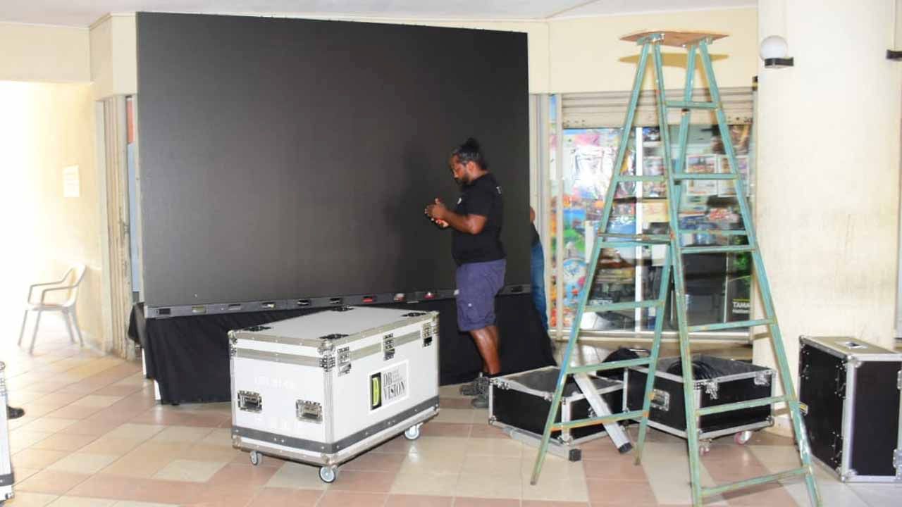 Des sonorisations commencent ainsi à être installées. Des oriflammes sont également disposées. Un écran géant a été aussi placé au niveau du rez-de-chaussée du bâtiment.