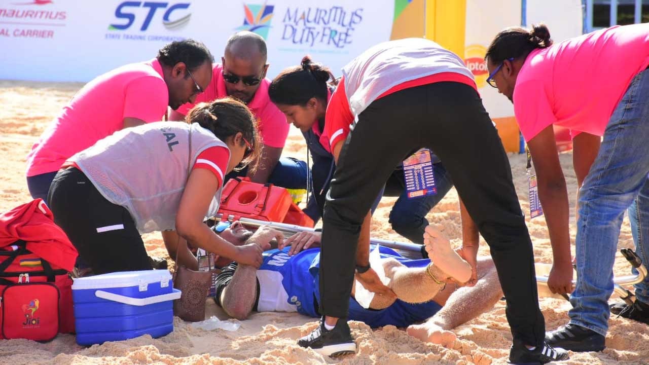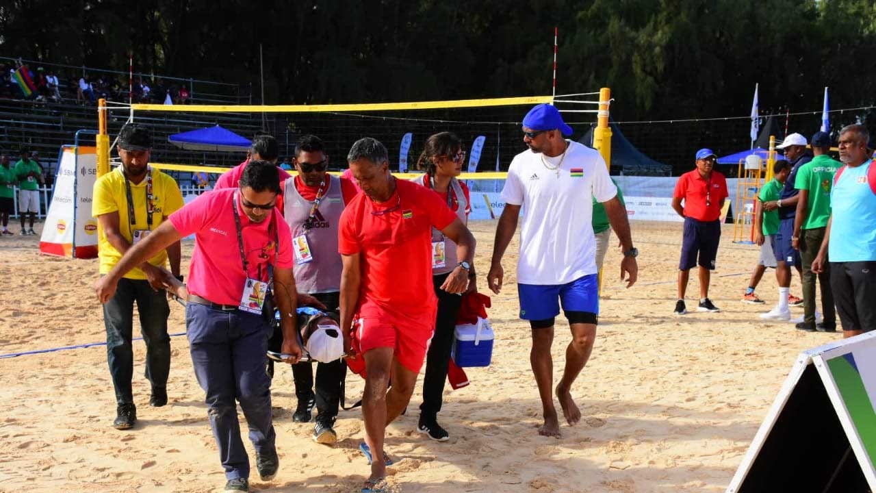 La compétition de Beach-Volley se poursuit ce dimanche matin 21 juillet sur le sable du Mont Choisy Beach Arena. L’équipe masculine B de Maurice était opposée à celle des Maldives quand Eric Louise, le volleyeur mauricien, s’est blessé au genou durant la rencontre. Le joueur a dû quitter ses partenaires, transporté sur une civière. Il a été transféré vers une clinique privée.