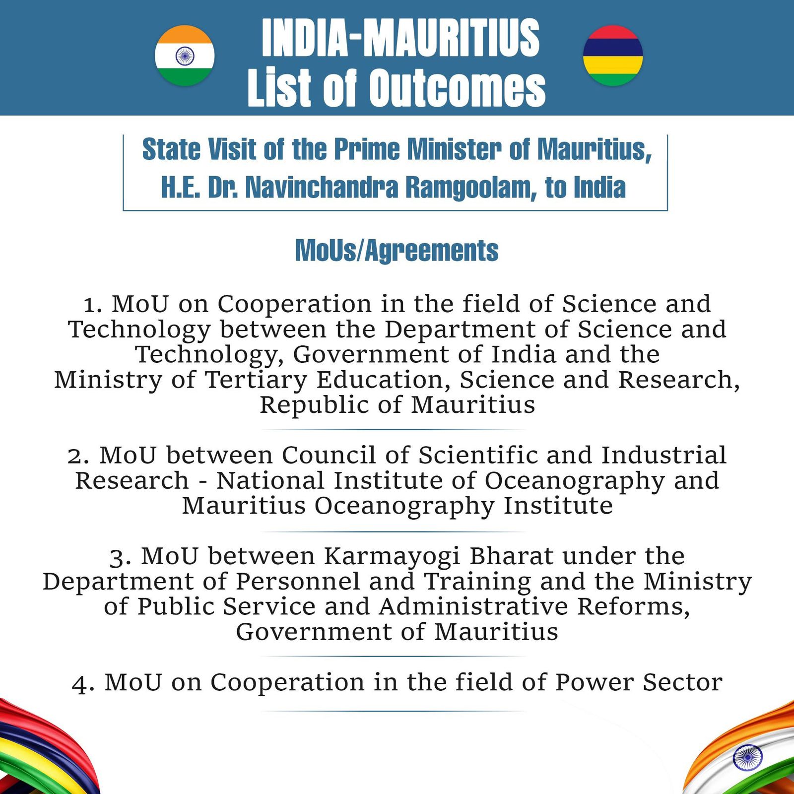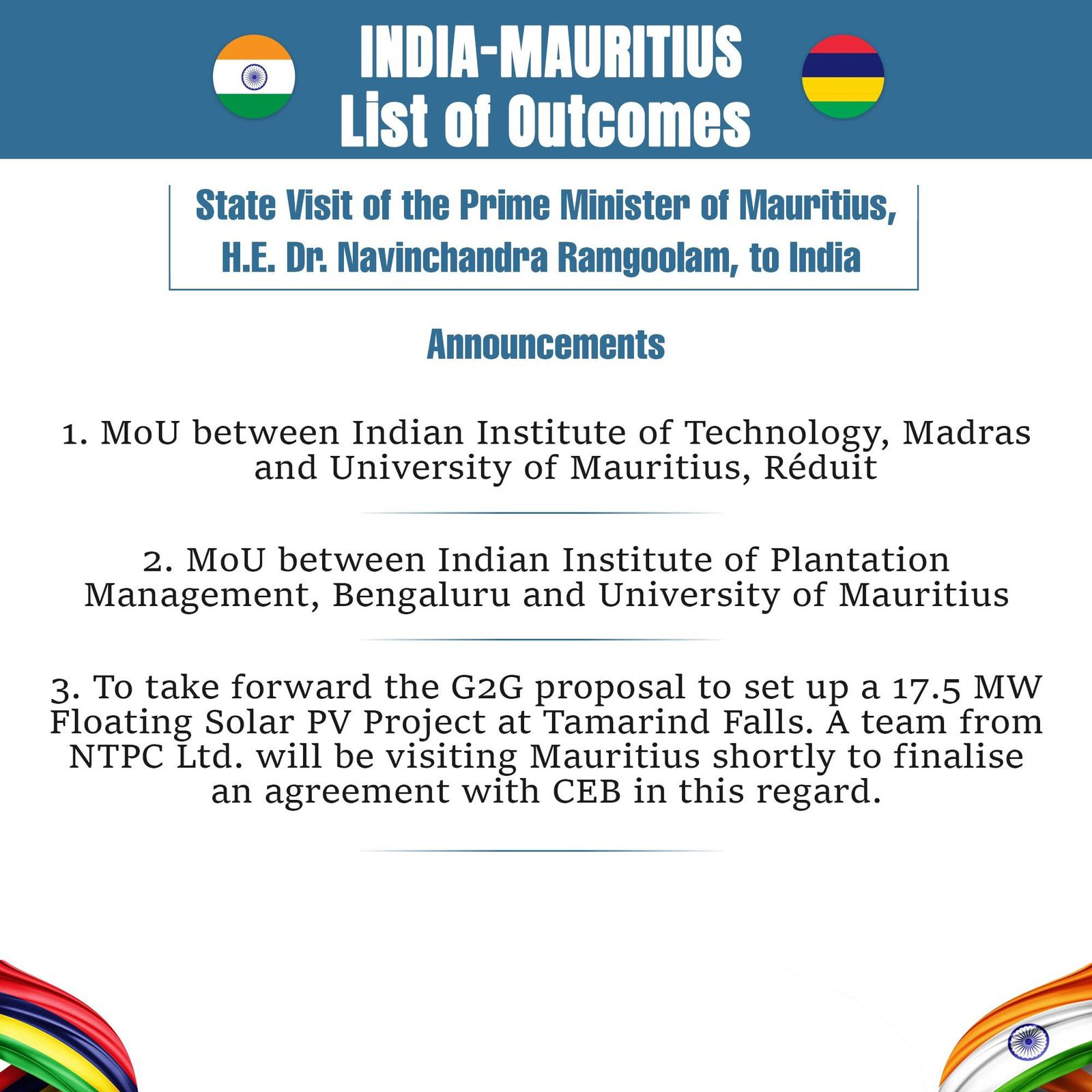 Le Premier ministre Dr Navin Ramgoolam et son homologue indien Narendra Modi ont discuté du partenariat stratégique renforcé entre les deux pays. Ils ont identifié de nouvelles opportunités de collaboration. Des protocoles d’accord ont été échangés ce jeudi 11 septembre à Varanasi, en Inde.