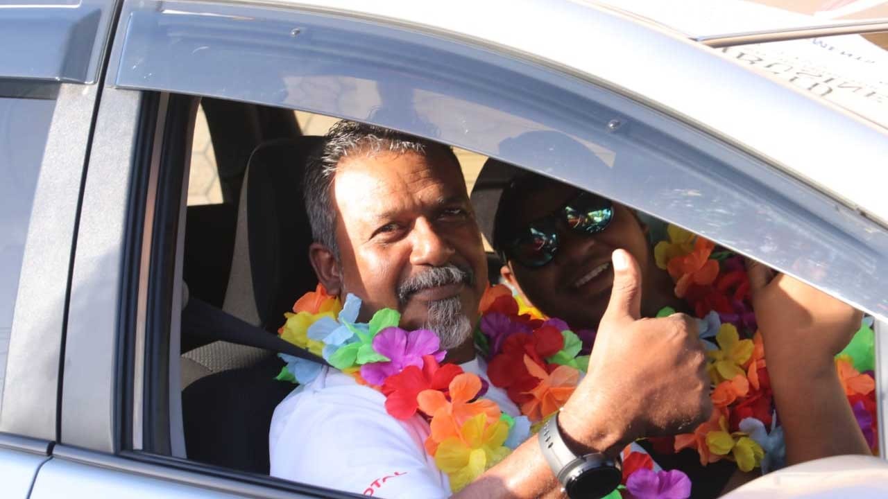 C'était lors du parcours de la traversée de la flamme. La journée a débuté à la municipalité de Quatre-Bornes. Les participants sont passés par La louise, La caverne, Glen Park, et La Marie pour terminer la journée à la municipalité de Vacoas.