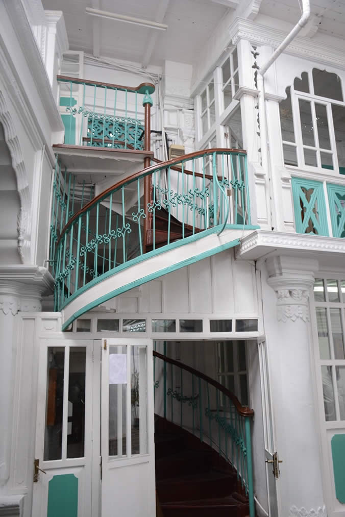 Cet escalier en colimaçon est entièrement en bois. Il date de 1852.