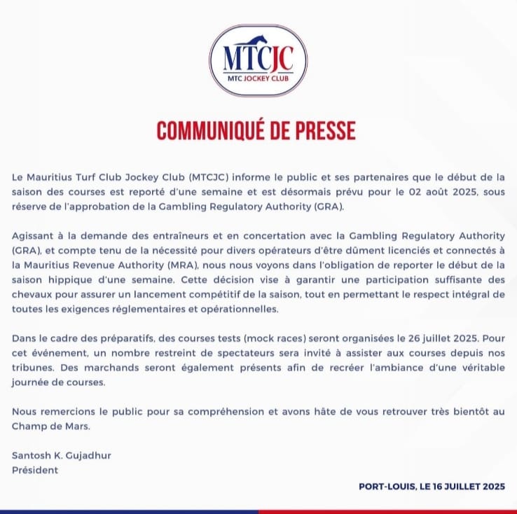 La saison hippique est reportée d’une semaine et débutera le 2 août 2025, sous réserve de l’approbation de la GRA