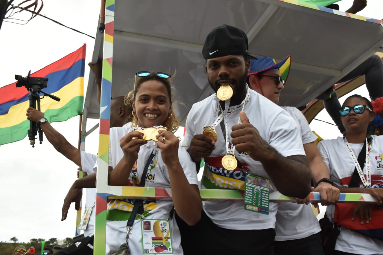 Ils sont nombreux à avoir fait le déplacement au Champ-de-Mars pour célébrer la belle victoire de Maurice aux Jeux des Iles de l’Océan Indien ce lundi 29 juillet.