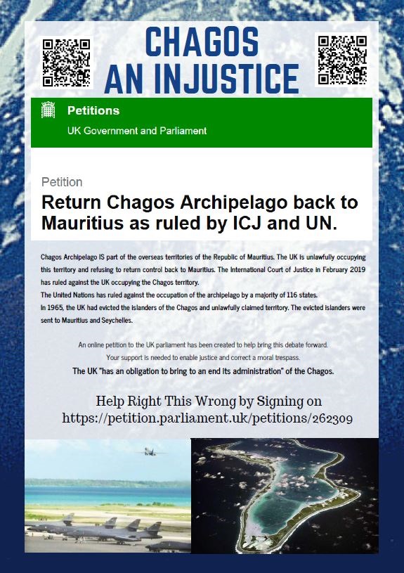 Ce Mauricien établi en Angleterre depuis 14 ans a récemment lancé une pétition en ligne intitulée : « Return Chagos Archipelago back to Mauritius as ruled by ICJ and UN ». Cependant, seuls les citoyens britanniques et les résidents au Royaume-Uni peuvent signer cette pétition.