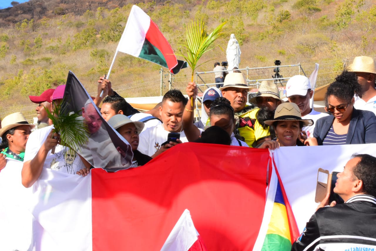 Pèlerins malgaches et réunionnais affluent en nombre important pour rejoindre le monument de Marie Reine de la Paix où le souverain pontife célébrera la messe à 12h15, point d'orgue de cette visite papale. Ces pèlerins se sont levés très tôt pour être au rendez-vous de cet événement.